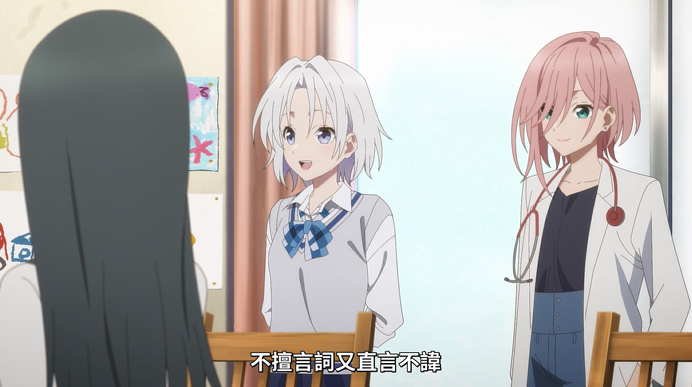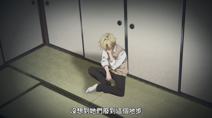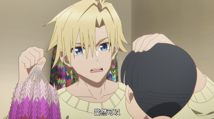 而随着两人的和解,一阵风吹过,桌子上的折纸飞了起来,画面非常唯美(类比于第一话的伴随着流星雨的樱花雨,很美的画面了()