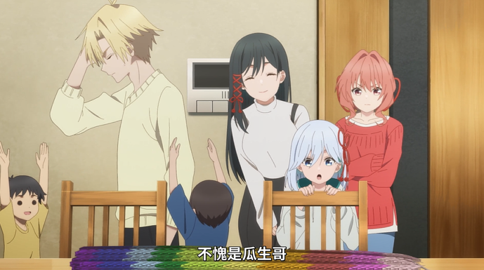 随后,瓜生和三姐妹(主要是夕奈)解开了矛盾,瓜生表示不应该因为闹脾气而跑出来,以后无论是家事还是什么自己都会做的,而夕奈则是表示,她们也会帮忙做家事,不会把所有的事情都丢给瓜生的,毕竟现在大家已经是家人了……
