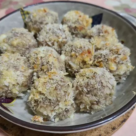 3.盐、醋、糖放在小碗中调化,炸后的肉用手轻轻砸了成2至3厘米小块,回入锅中,烹淋上糖醋汁,颠锅均匀淋入芝麻油,即可装盘上桌。