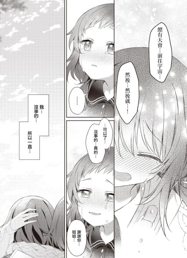 虽然穗波每次安慰到海果,但是无法改变海果不擅长交流的事实,而每次看到因为这个而感到失落的海果,穗波都会担心,她会不会“离开”。当然,这里的离开不是物理意义上自杀的不负责任的想法,也不是说去了宇宙之后就再也不回来了。而是实现这个所谓“天方夜谭”的梦想——前往宇宙。就是因为执着于无法实现的事情,才会被周围人视为异端。倘若有实现的那么一天,那海果就不需要再去承受那些嘲笑了。