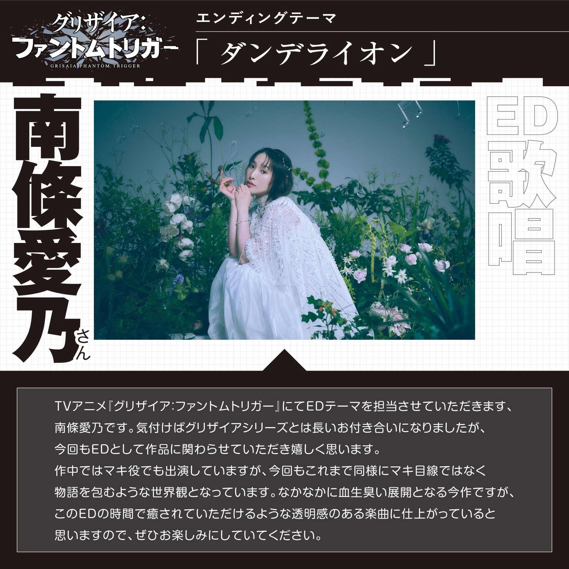 由 FrontWing 所發行的美少女遊戲改編,電視動畫《灰色:幻影扳機(グリザイア:ファントムトリガー)》官方在1日宣布將於 2025 年 1 月1日開播的消息,並且釋出片頭曲宣傳影片與主題曲情報。