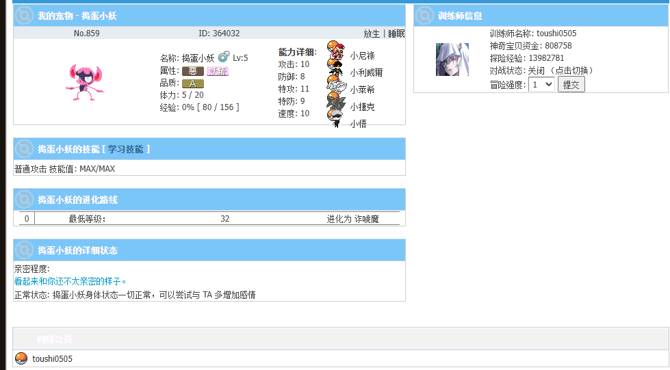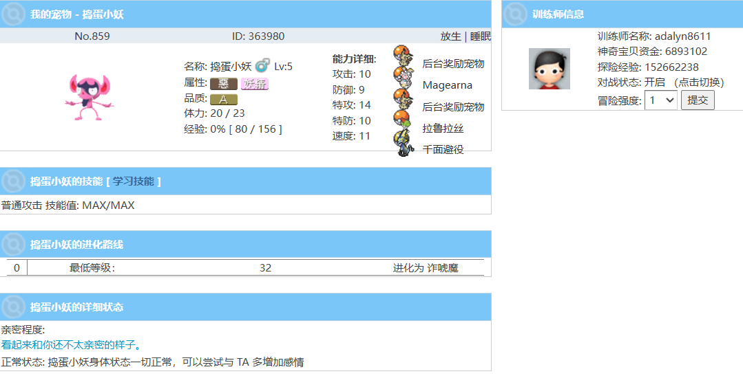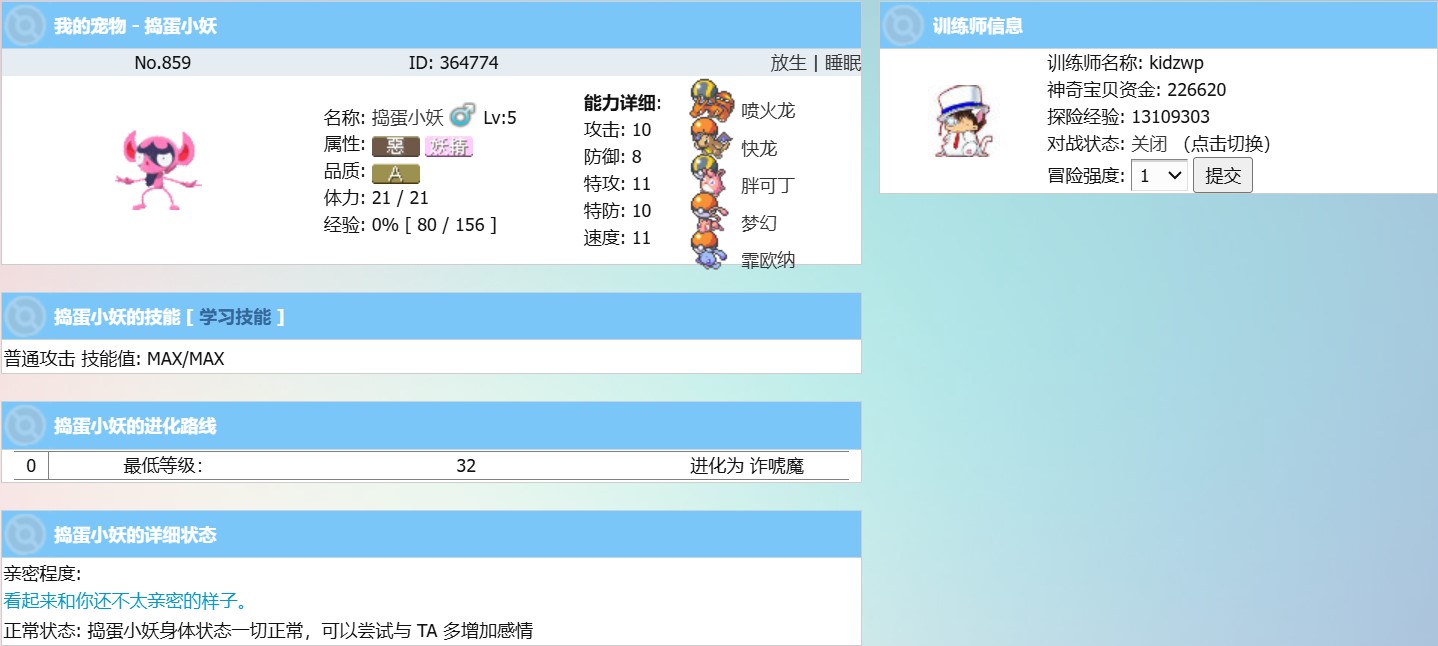 吐槽:界面上没写二阶进化,记得以前看到过多种进化路线的,可能记忆混乱了~