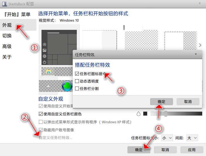 你可以在开始按钮处右键 - 属性,然后在外观里面设置,如下图: