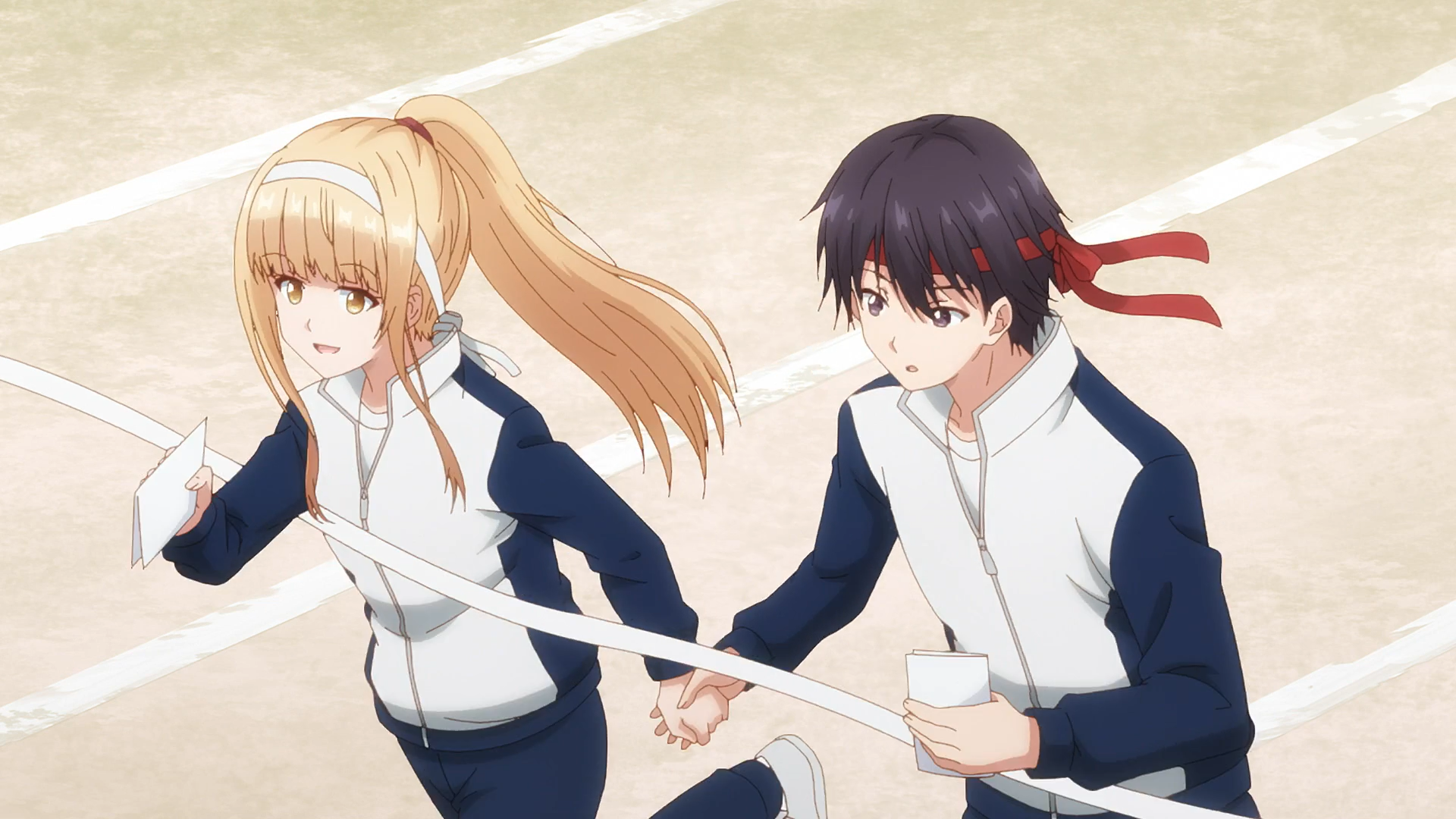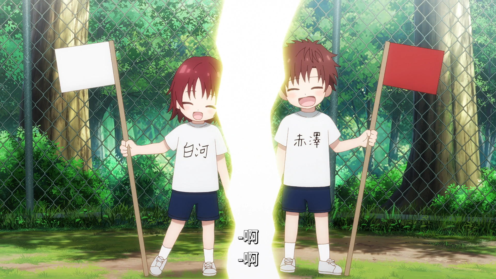 这边继续转场到学校,体育祭的红白分组(看来所有霓虹学校运动会都搞这一套),千岁和树因为没分在一组还十分痛心,上演了一出搞笑爱情剧(啥)