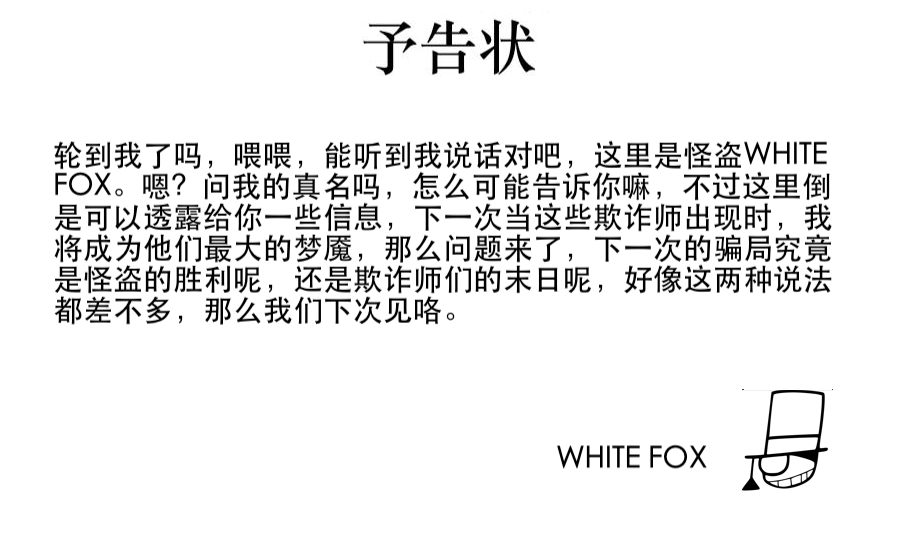 看完后,纳闷开头出说到的怪盗WHITE FOX,怎么在后面的故事都没有出现啊,原来是为下一个Extra篇做铺垫啊