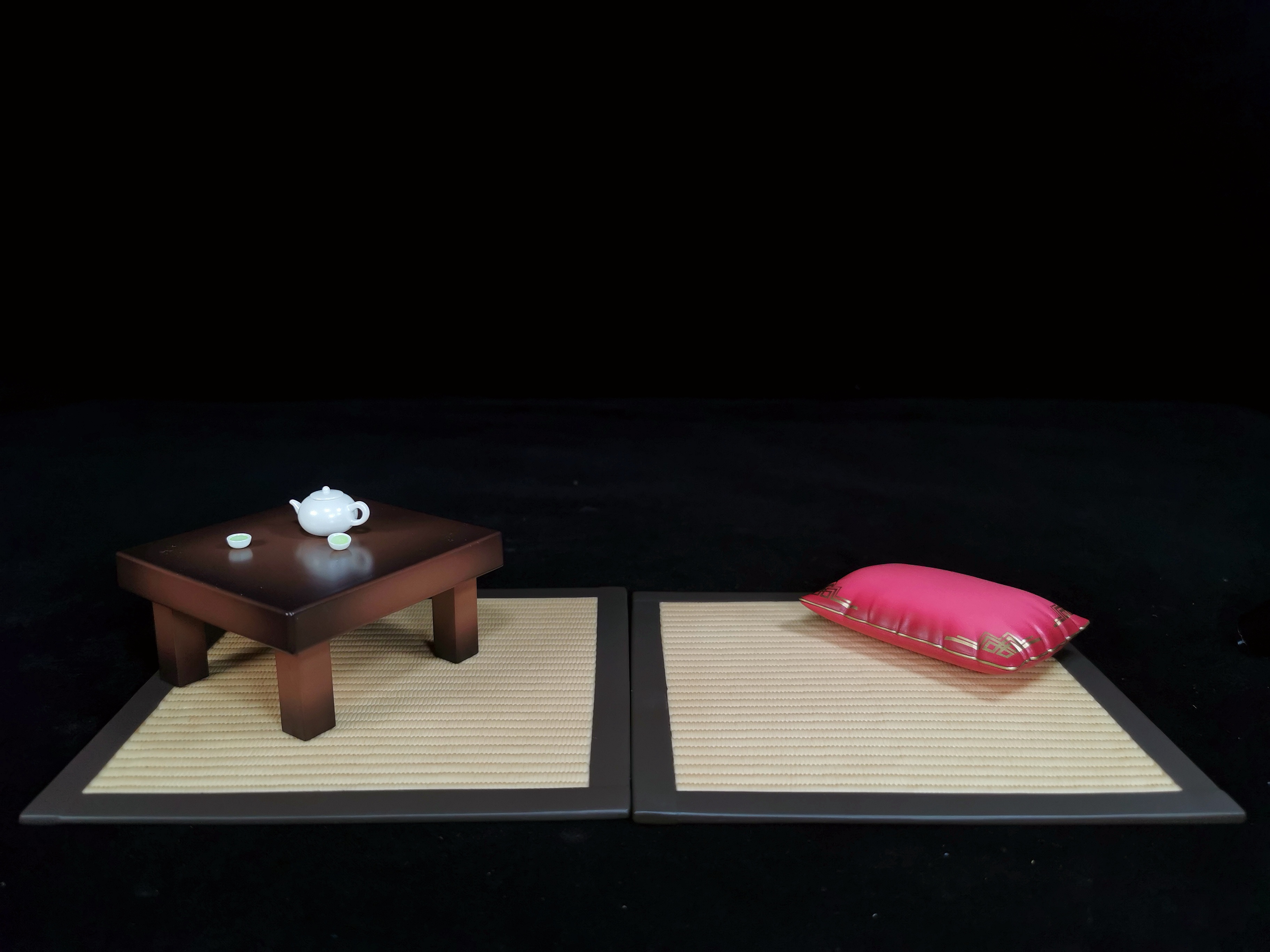 手办底座是两块榻榻米,手办本体与其他场景道具不固定在榻榻米上