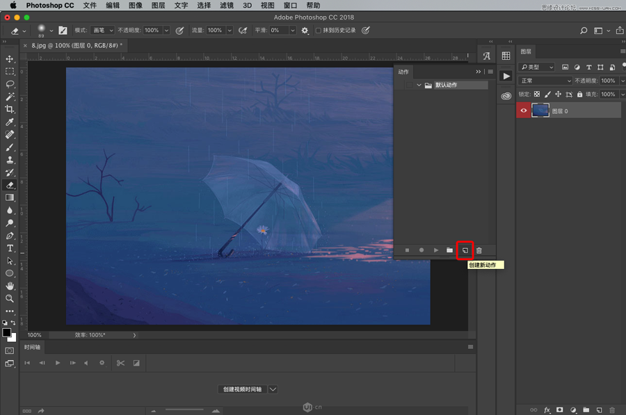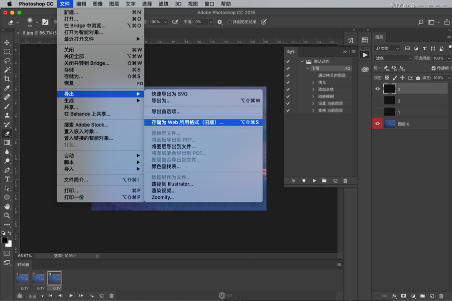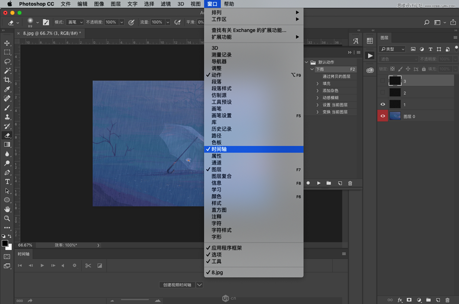 然后,我们开始制作GIF,选择:窗口 > 时间轴