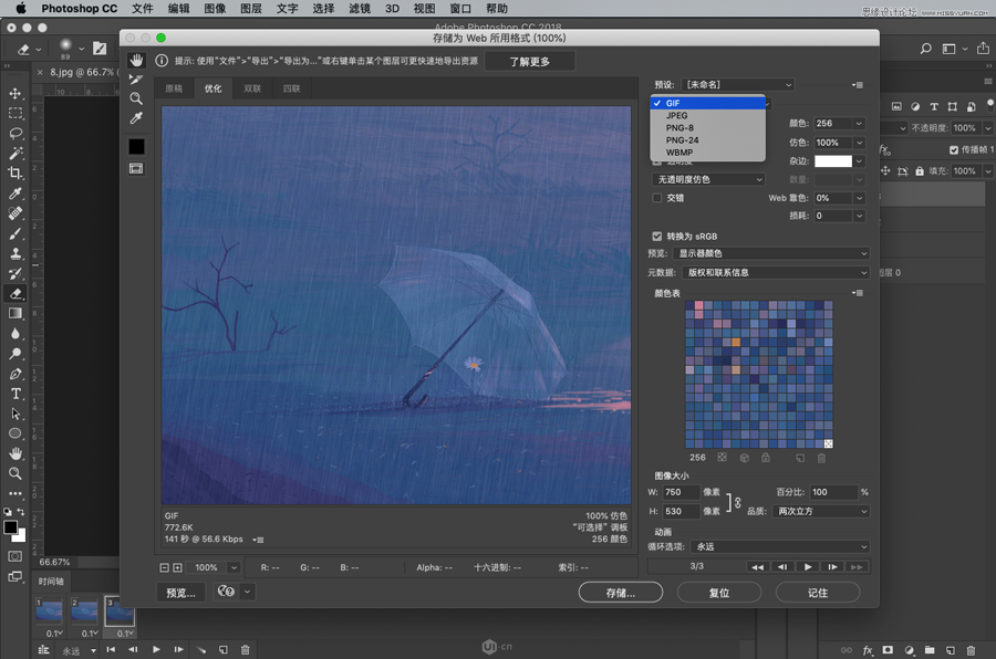 选择导出格式为GIF,大小可以按照需要修改