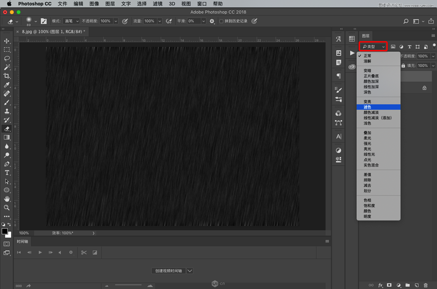 调好以后,将图层的混合模式类型设置为滤色。