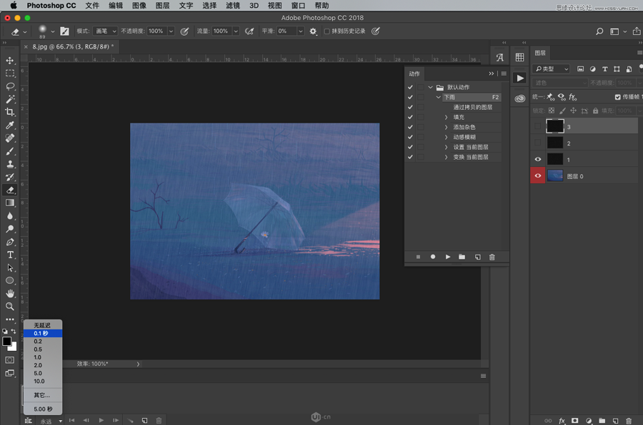 想要制作下雨的动画有许多种方法,这次我们就主要讲一下用所有平面设计师最熟悉的PS是怎样制作下雨动效的。推荐给思缘的朋友学习,希望大家可以喜欢。
