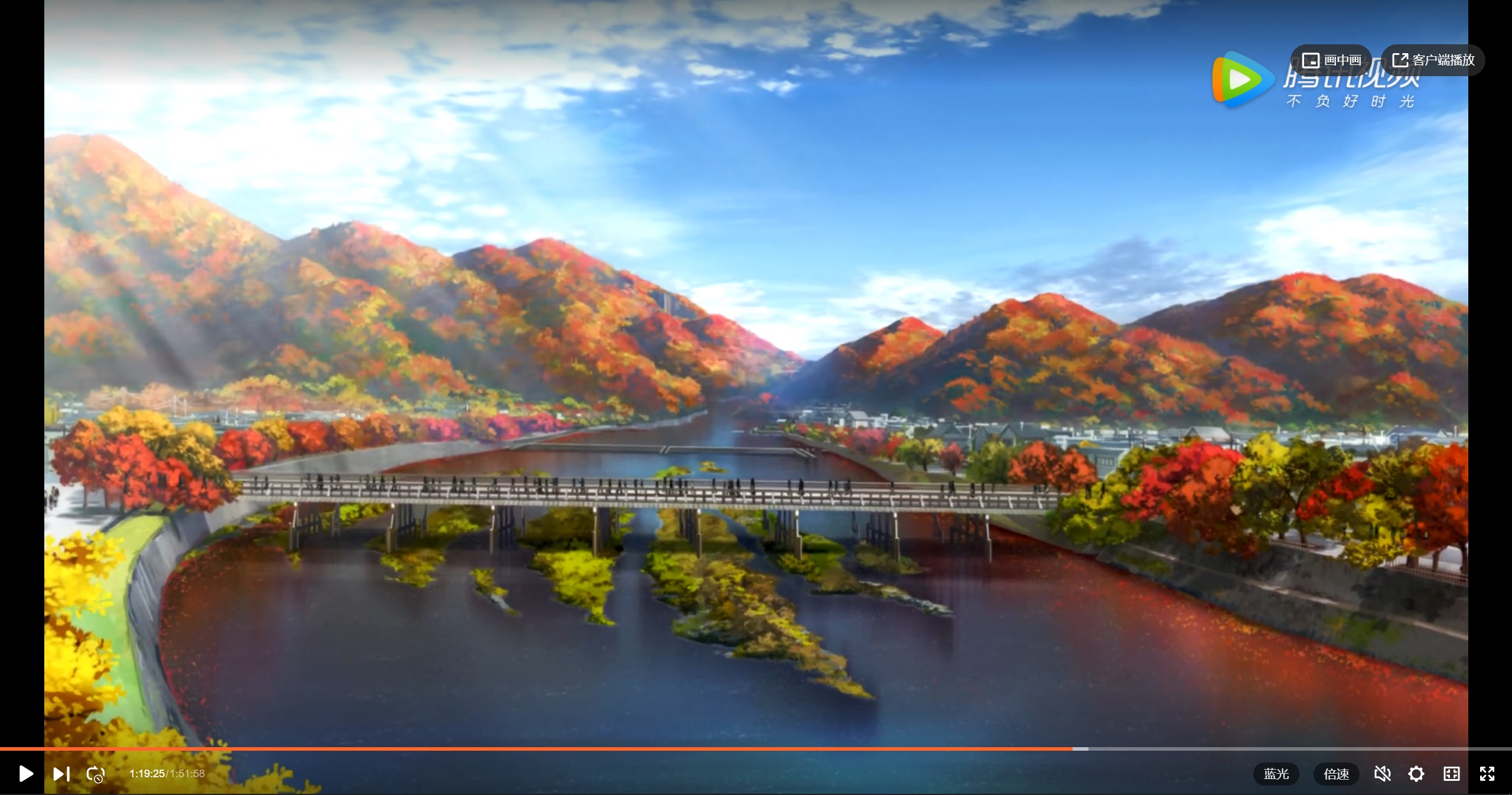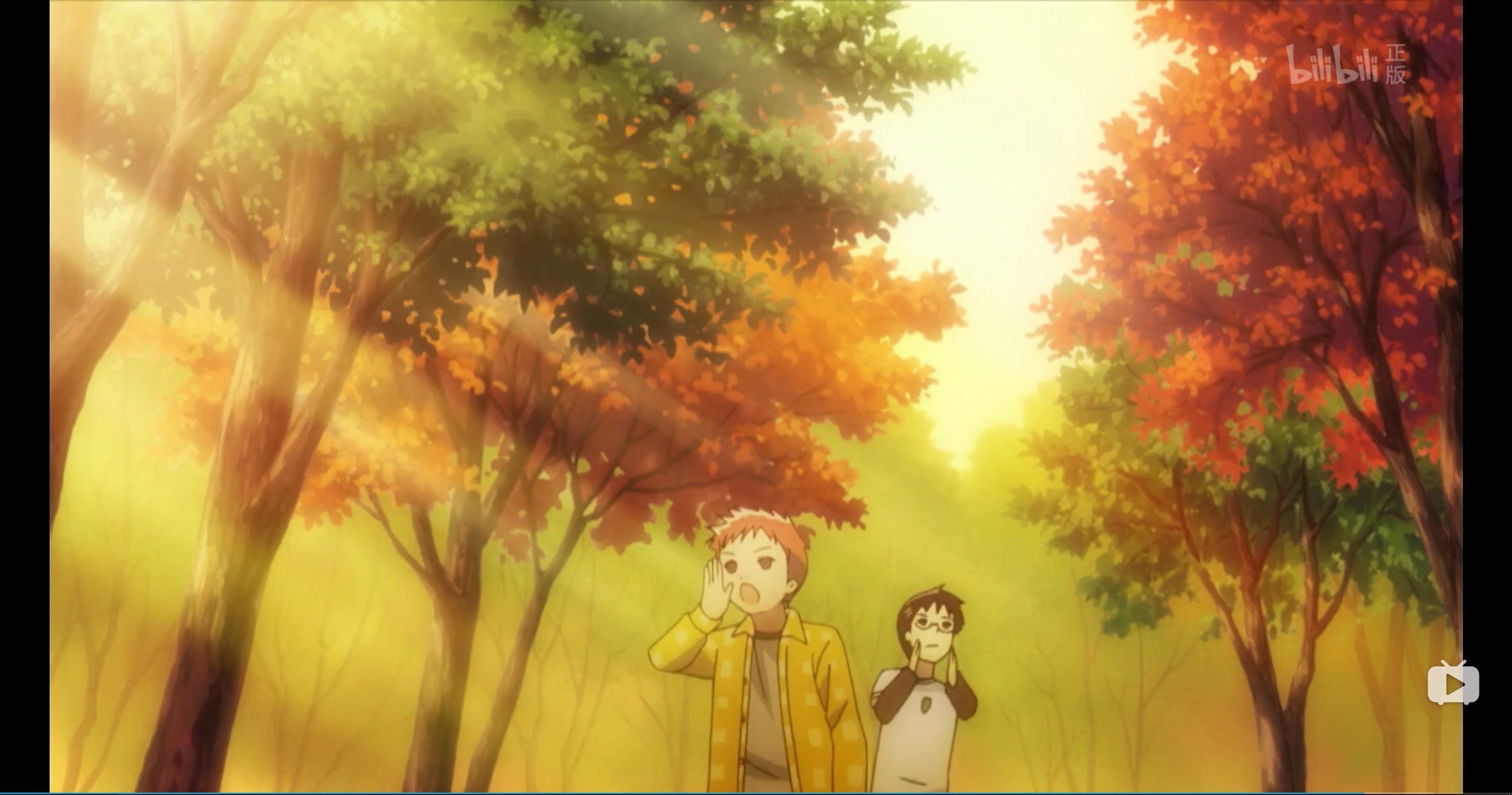 秋景简介:动画实在难找,同人图吧233。此图明显是秋天,灵梦漂浮于空中(也可能是从高处落下?),周遭则是大量的枫叶,远处,姑且将它富士山吧233。整体效果还是挺唯美的。