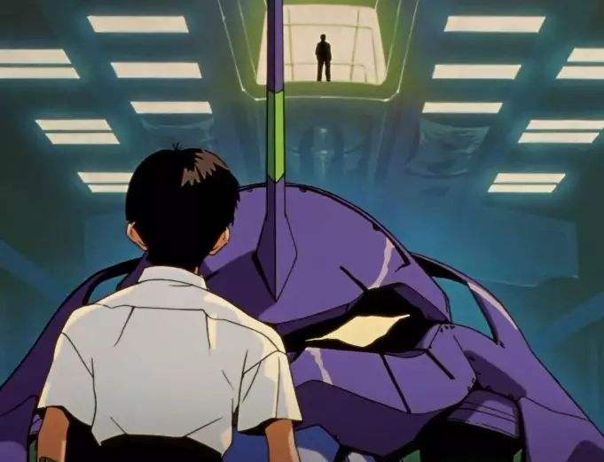3、两人互动场景:碇真嗣面对阔别十年的父亲得到的回应不是想念的话语,而是“坐上初号机与使徒战斗”的冷冰冰的命令,碇真嗣生气地表示拒绝,于是父亲碇源堂说出了名台词:“要驾驶的话就坐上去,不干的话就滚回去”