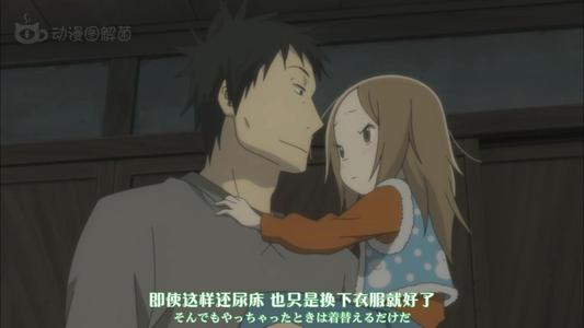 3、两人互动场景:泡着澡的空太被突然进来的父亲吓了一跳,然后两人商量着优(空太的妹妹)要考进水明艺术大学的事情,最后泡晕的父亲向空太求救。