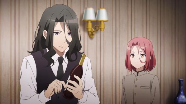 画面来到克劳斯这边,突然有人敲响了房间的门。克劳斯打开门之后,发现是一个送葡萄酒的小哥,在让他进来之后,克劳斯关上了房间的门。原来,小哥是葛蕾特假扮的,而她这次来,自然是要给克劳斯送情报的(克劳斯之前有说过,他不会和除了情报组之外的人接触,而葛蕾特属于情报组)。