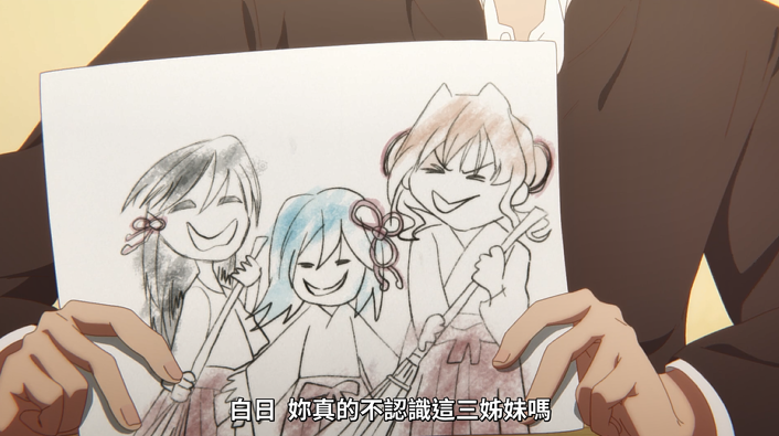 瓜生自然也是拿着三姐妹的图画询问白日是否认识(画的确实很抽象,很符合之前瓜生梦境中的三姐妹形象(啥