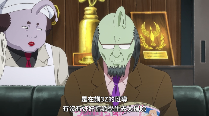 不只是3年Z班,校长室里,笨蛋王子也在打扫,虽然旁边的管家叔在看漫画摸鱼