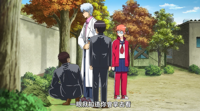 镜头最后是来到了室外,在这里神乐、新八叽和长谷川在除草
