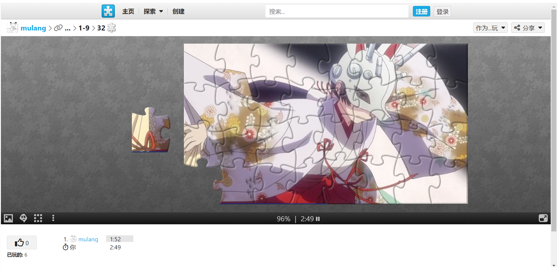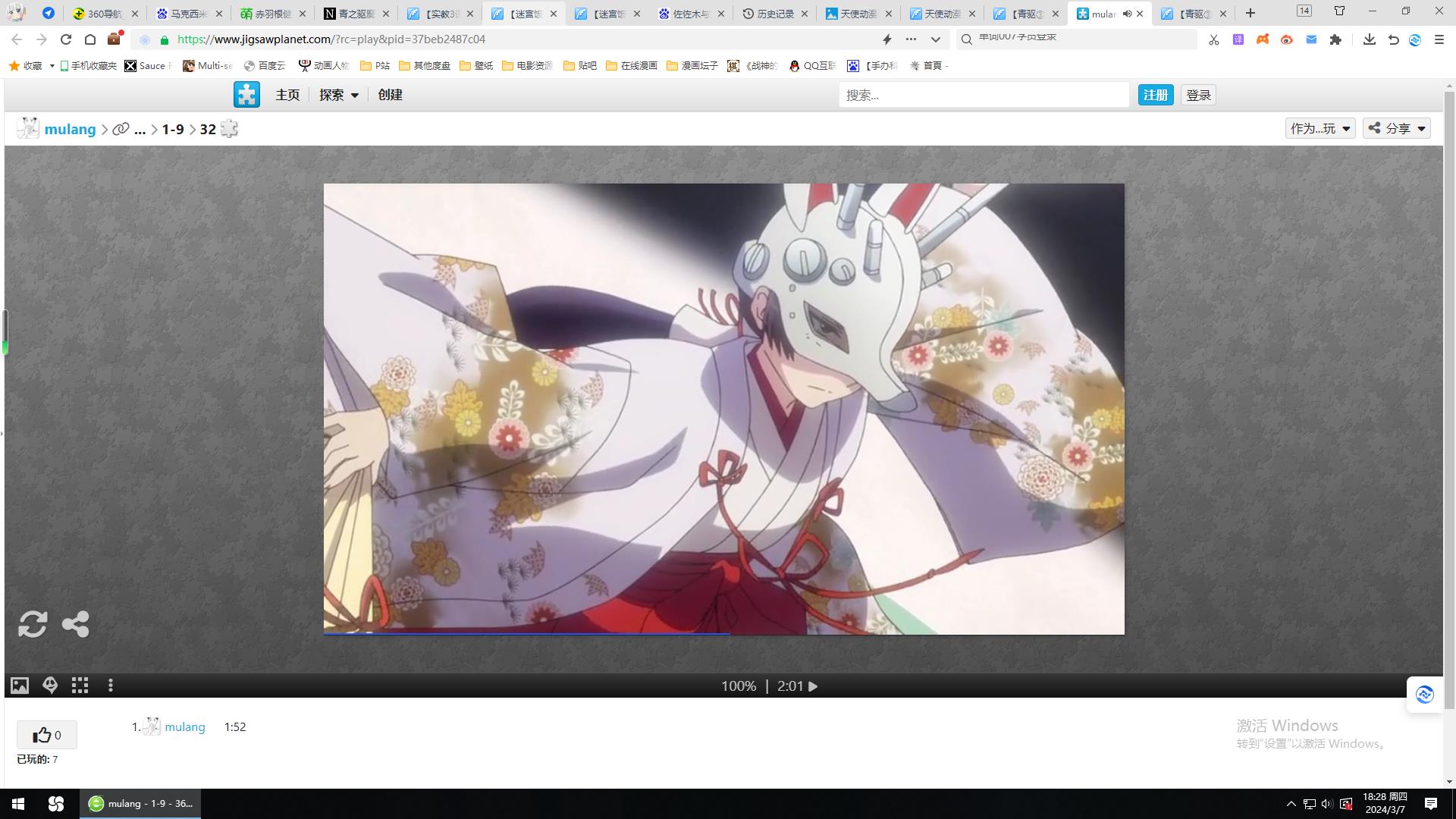 Part1问答开始:(10ww+20tsb+tr+fh) Q1:【外道院】把【稻光集团】底下研究基地称为什么?(圣灵药,男主燐说话后) Q2:【出云】为什么在“圣灵药”刺激下的失败品膨胀的铁架桥上拒绝了男主【燐】的救援之手?(回忆,内心感受) Q3:【外道院】给【出云】戴的面具有什么效果?(和研究员的对话) Q4:【燐】被引爆“圣灵药”后的怪物吞掉后想起了谁和他说‘要将力量用在温柔之物上’?(回忆) Q5:【出云】在即将被九尾吞掉意识的时候意识到自己对大家(身边人)的真正感受是什么?(内心的独白) Part2拼图(5ww+10tsb+tr+fh) 拼图:Play / 开始拼图