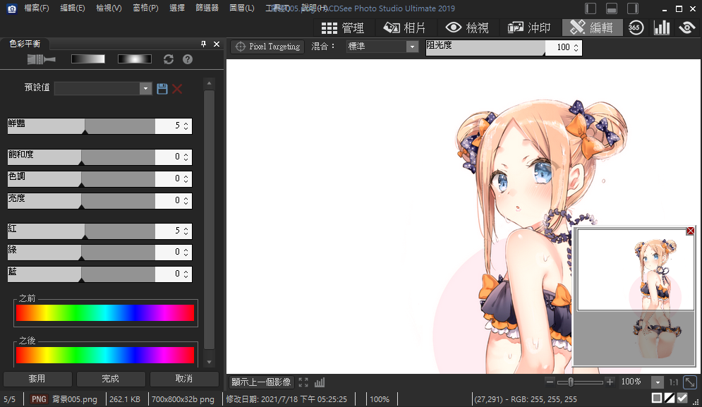 」都調到5,是否感覺人物的氣色變好了=w=?