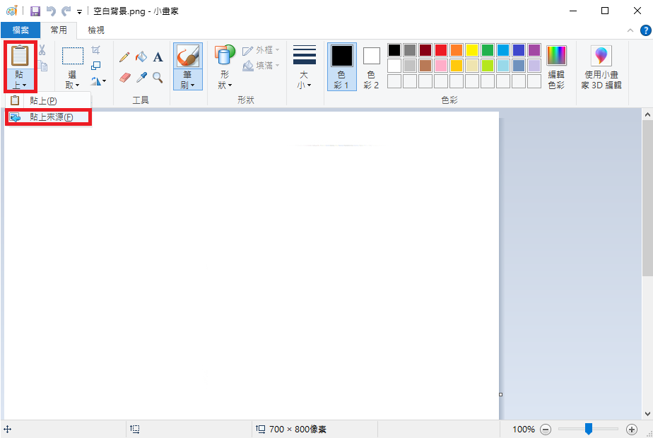 三、使用小畫家,把調整好大小的圖片貼到空白背景上。