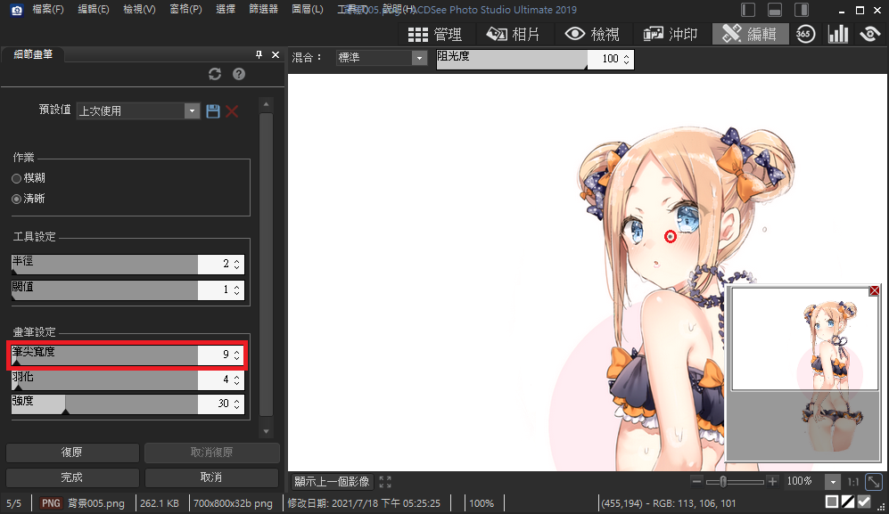 」也很好用,可以處理人物的眼睛,或是想要變清晰的部分。