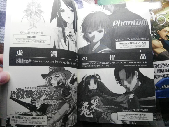 最后一张图里的是虚渊玄当时的游戏,大家玩过哪些呢,我是都略有玩过,我十分喜欢fz这部作品,看了n遍,书中的原文我几乎可以背下来了。。我还特别喜欢他的作品psycho pass心理测量者和phantom of inferno幻灵镇魂曲,但是此后他的作品我就不喜欢了,再加上作者的zz倾向,唉,我真的好失望,无话可说,我爱fz爱的是那么地深沉