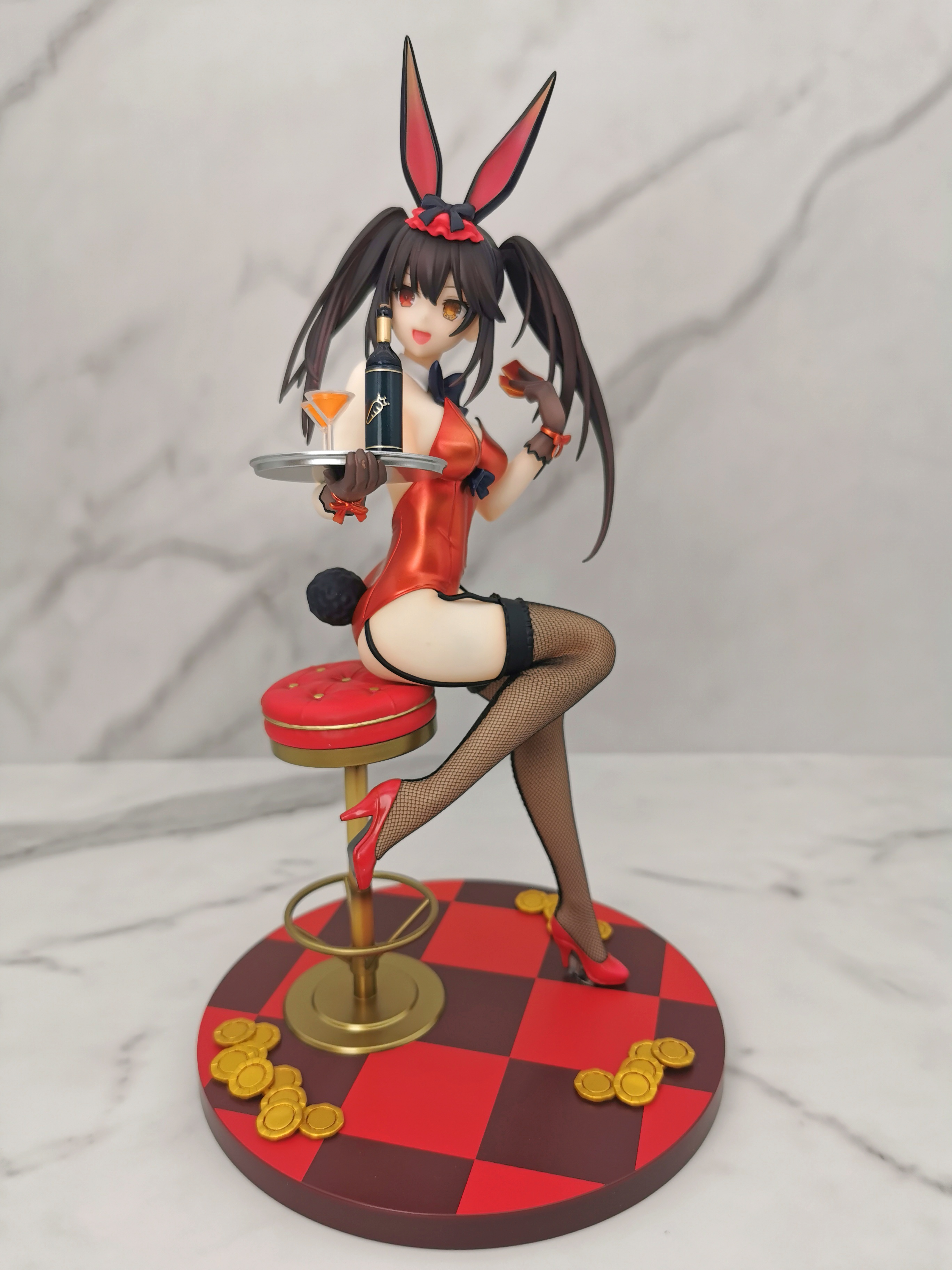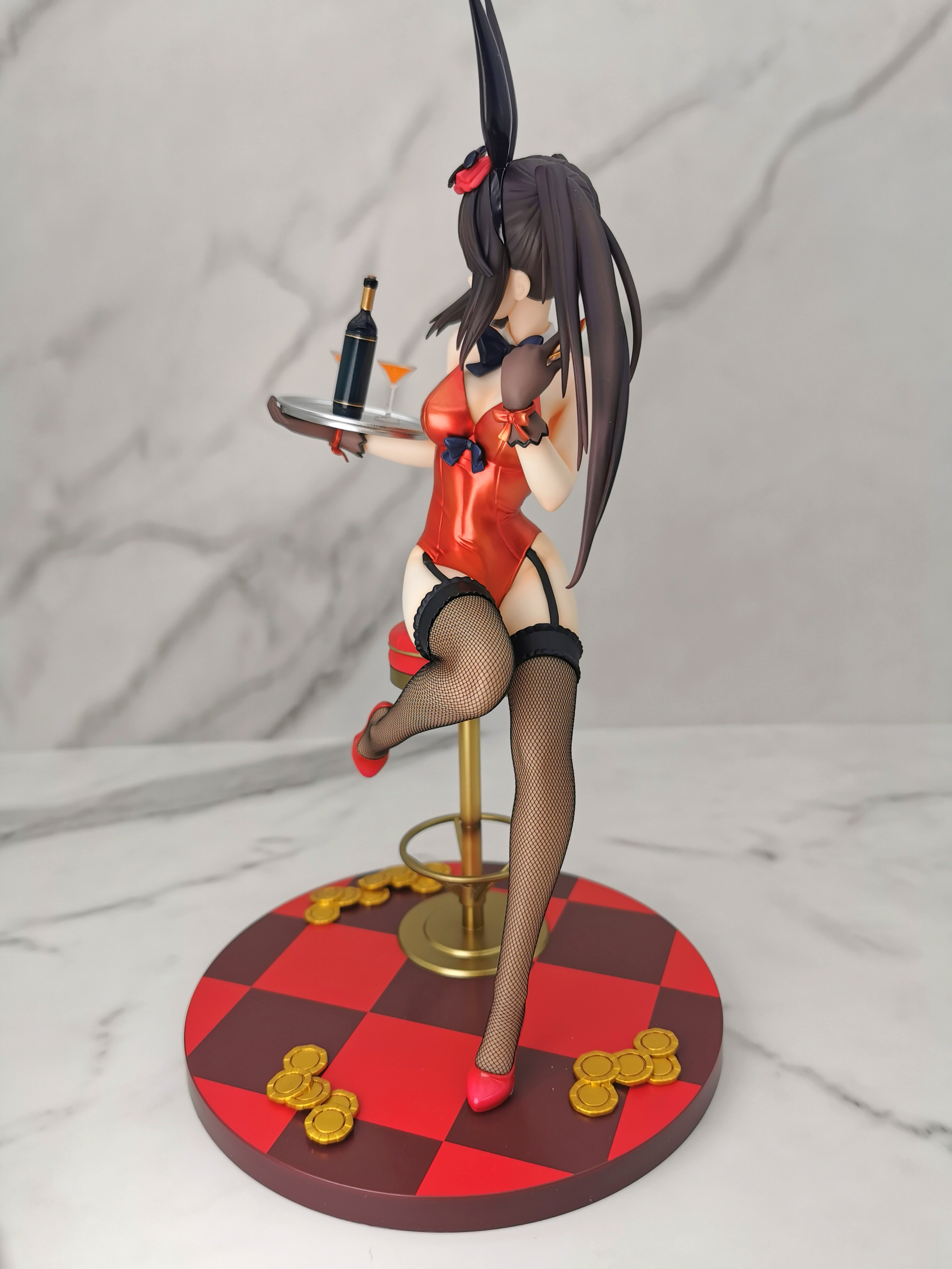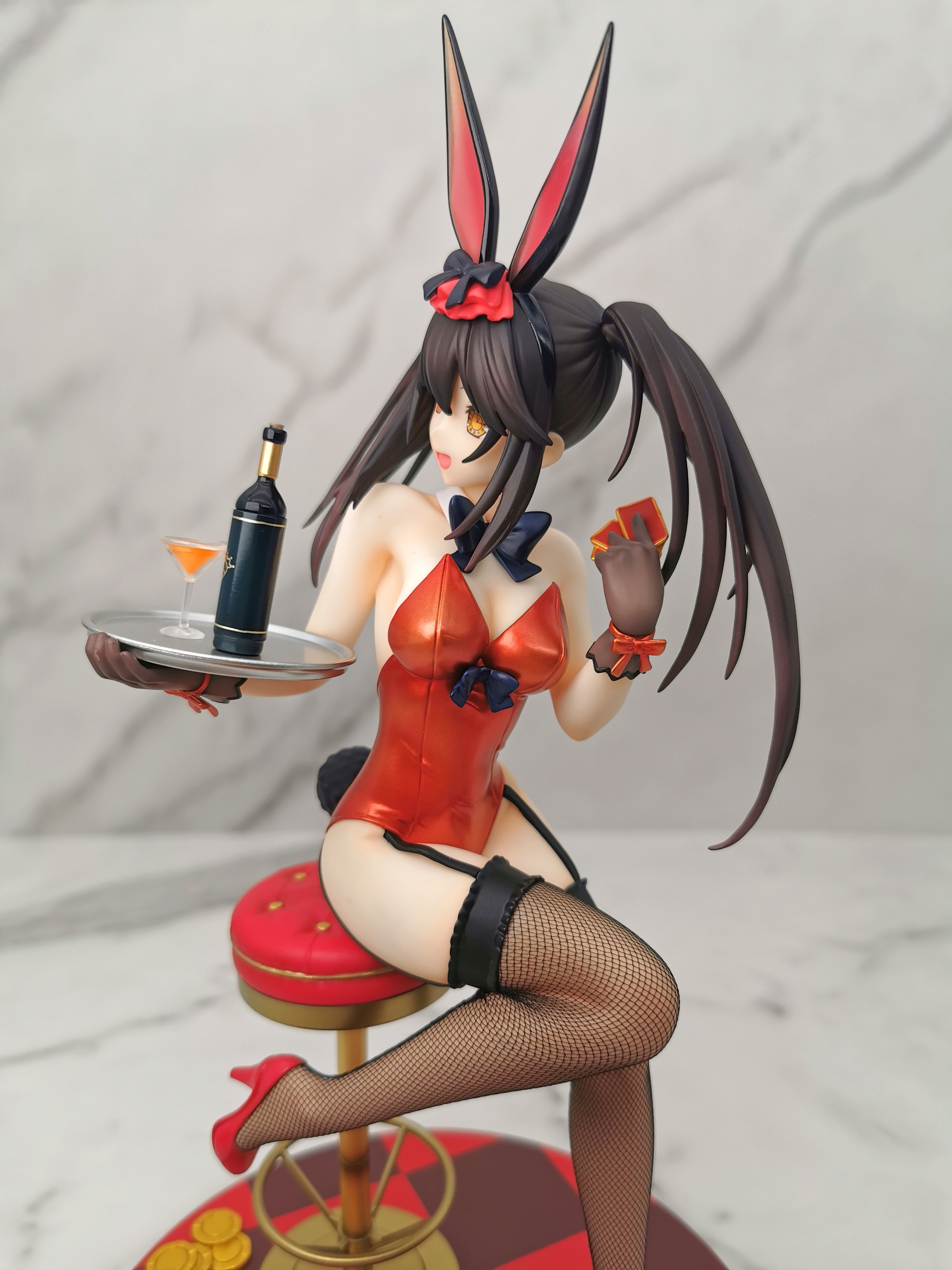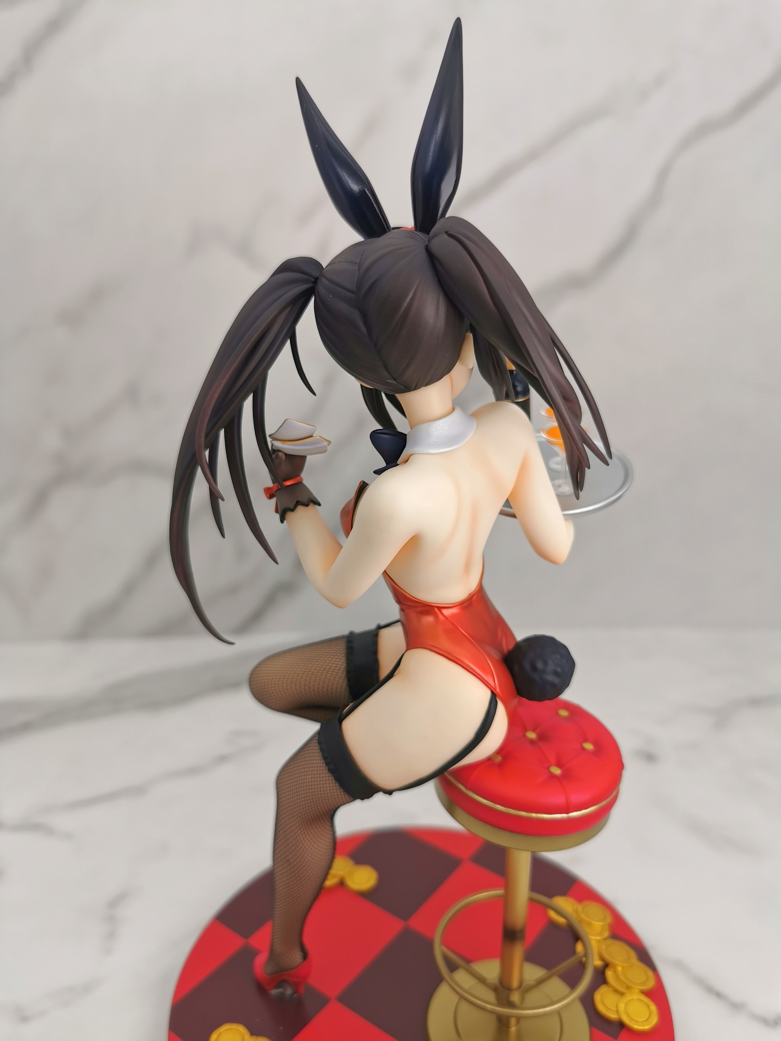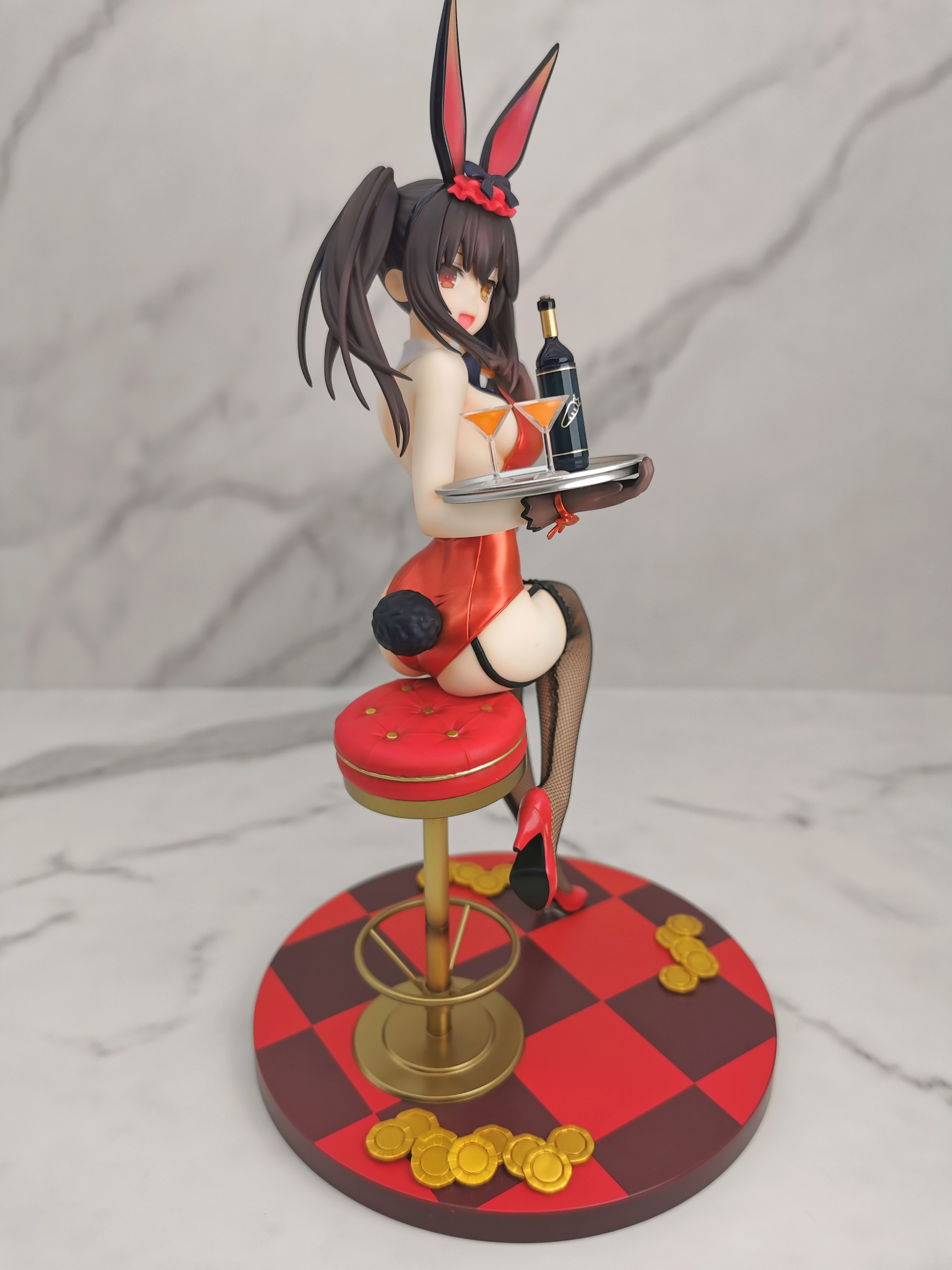 原图狂三是坐在赌桌的旁边,手办改为坐在了一个高脚椅上