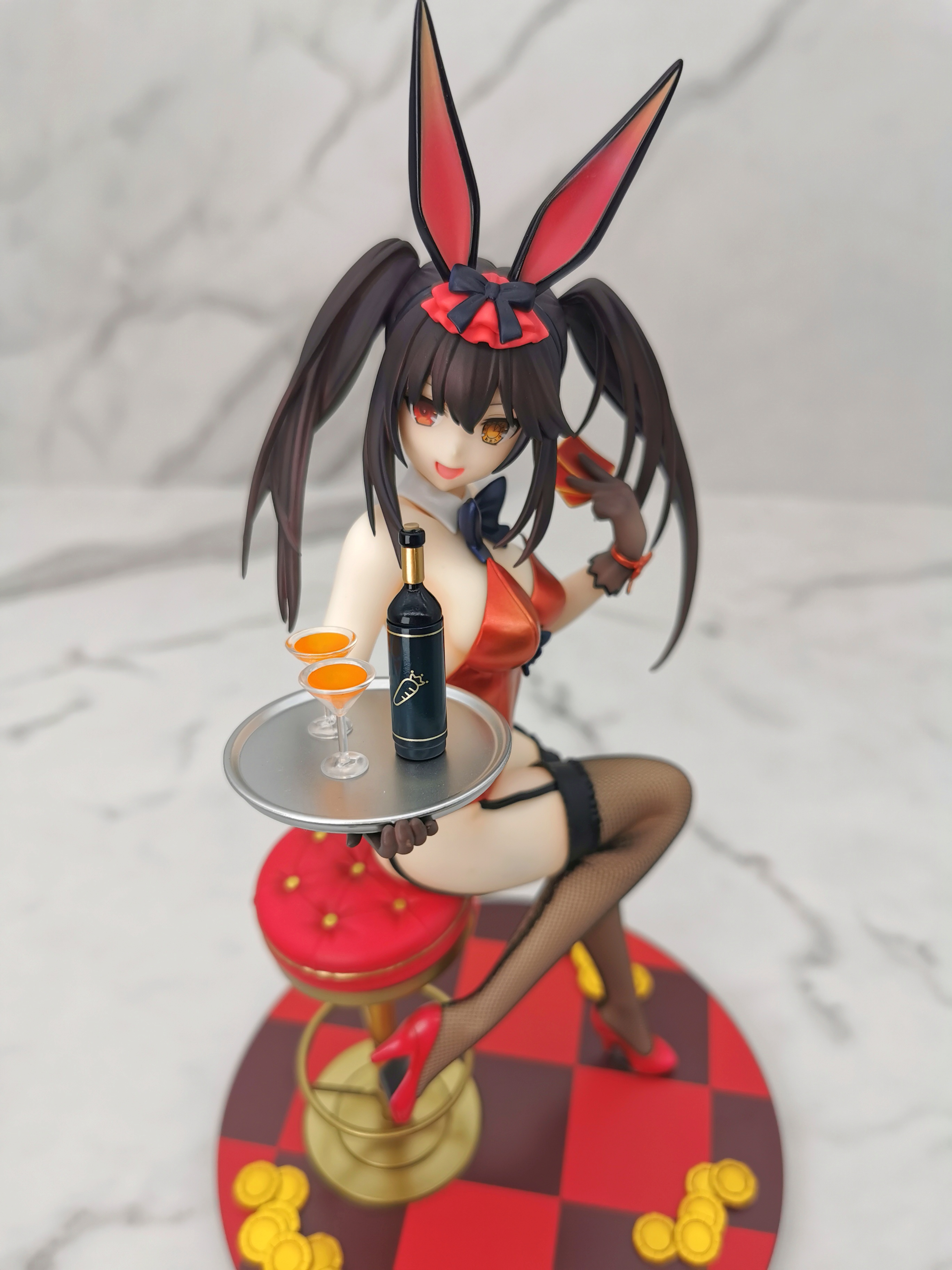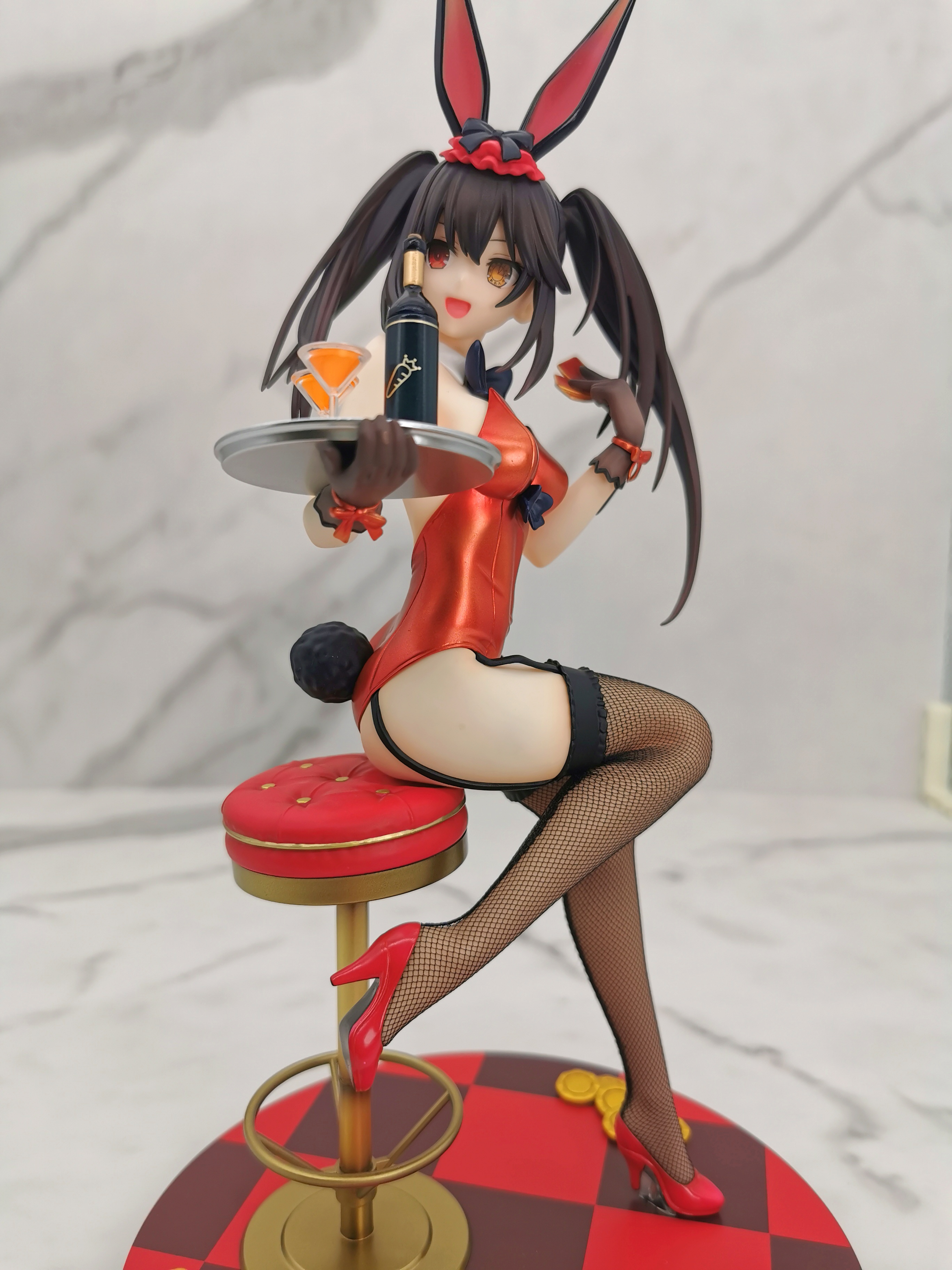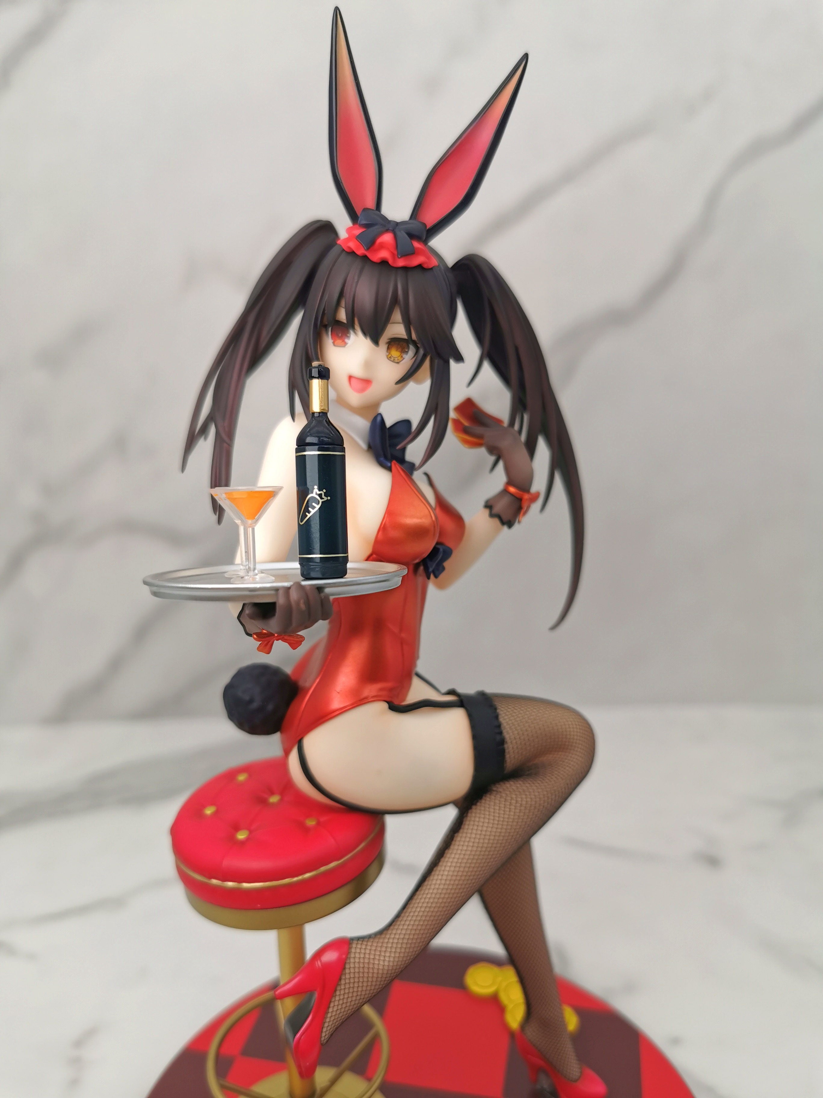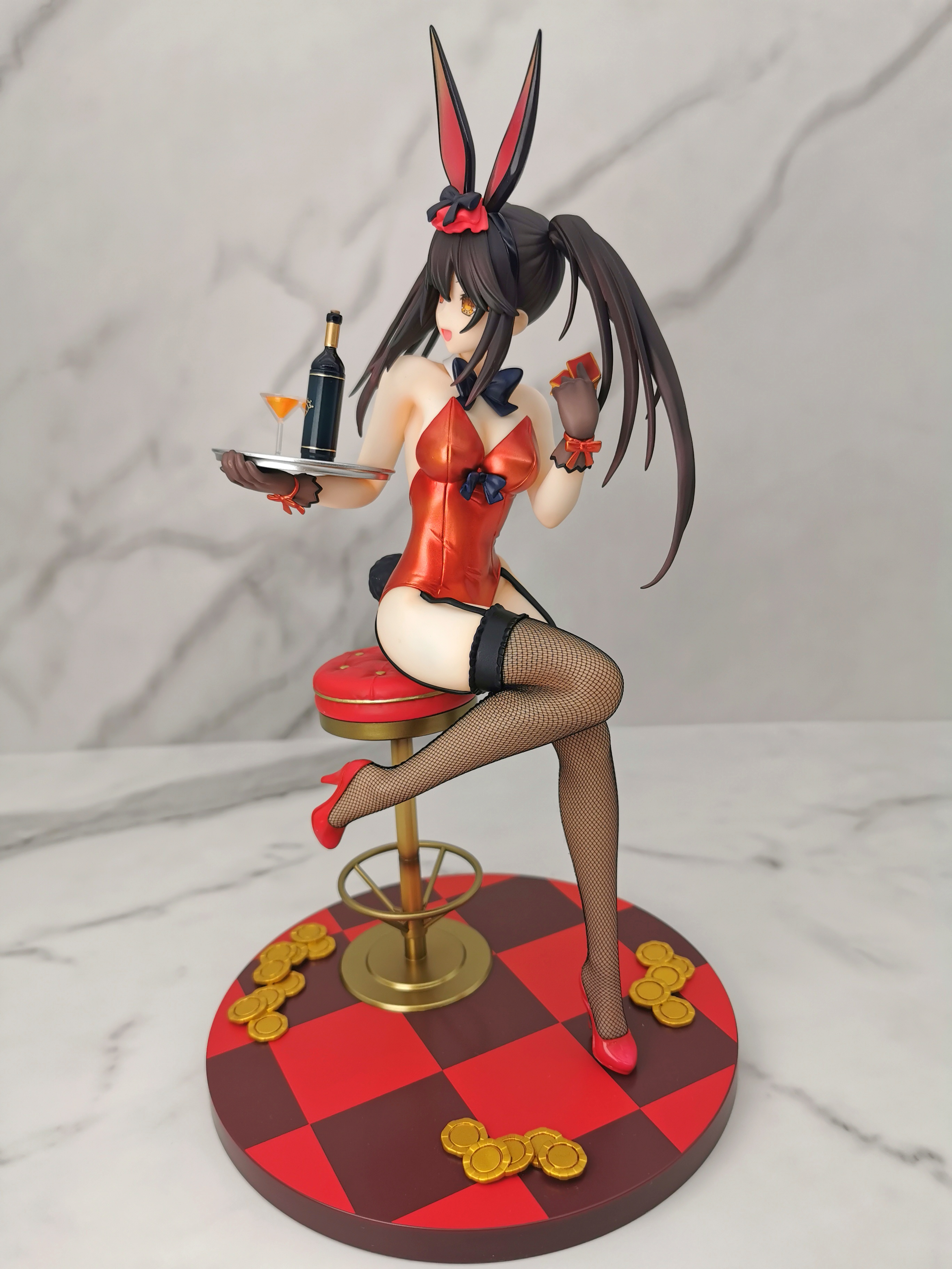原图狂三是坐在赌桌的旁边,手办改为坐在了一个高脚椅上