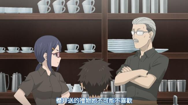 随后樱井到了咖啡店中,向店长和学姐表达了他不知道要给宇崎酱送什么生日礼物的烦恼。虽然樱井也想到了几个可以送的礼物,但只要一想到宇崎酱收到礼物之后的反应,就又变得消极了起来。但一旁的店长和学姐却能猜到真实的情况,并且得出了“樱井送的礼物小花不可能不喜欢”的结论。