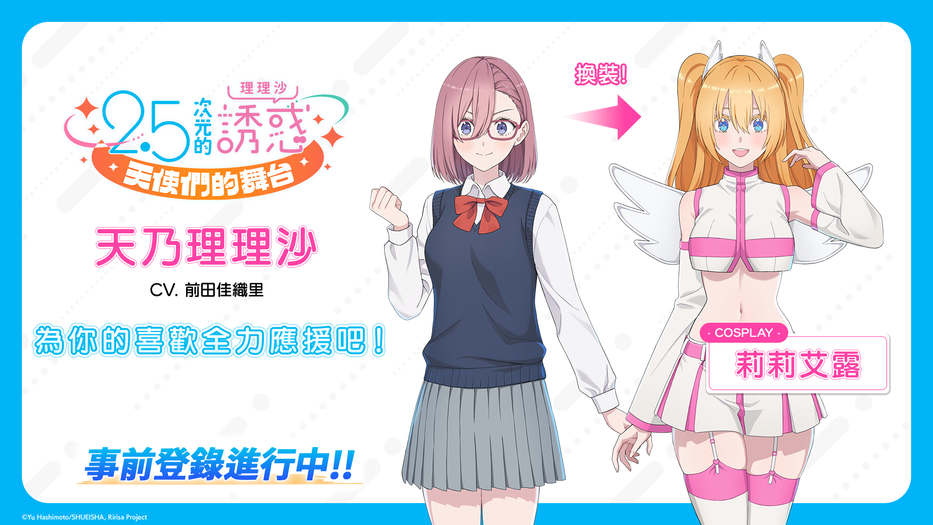 《2.5 次元的誘惑(理理沙)天使們的舞台》事前登錄活動現正熱烈進行中,更多遊戲相關內容也將陸續釋出。為你跨次元的喜歡!用盡全力應援吧!更多遊戲相關詳情請密切關注《2.5 次元的誘惑(理理沙)天使們的舞台》的 Facebook 官方粉絲團!