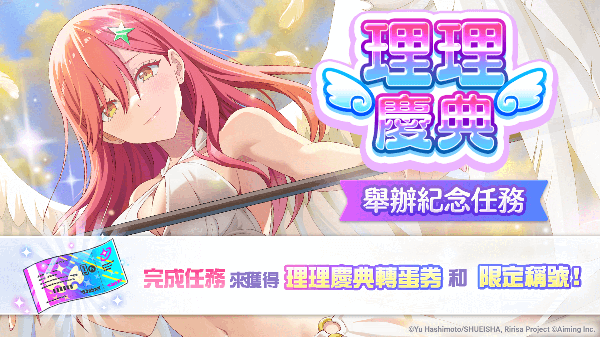 為紀念理理慶典轉蛋角色【旋律之華爾琪】梅莉亞/喜咲亞理亞 登場,決定實施理理慶典舉辦紀念任務,期限內完成任務可獲得提升數值限定稱號「【旋律的華爾琪】梅莉亞/亞理亞」與理理慶典轉蛋券。