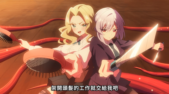 而来到楼顶的三人,自然也是遭到了头发的追击,于是,面对头发的袭击,凪乃和美美美两人开启了配合,曾一度击退了头发的袭击(其中一人是效率至上的“机器人”,另一人则是非常擅长打理头发,可以说是碰到会做的题目了()