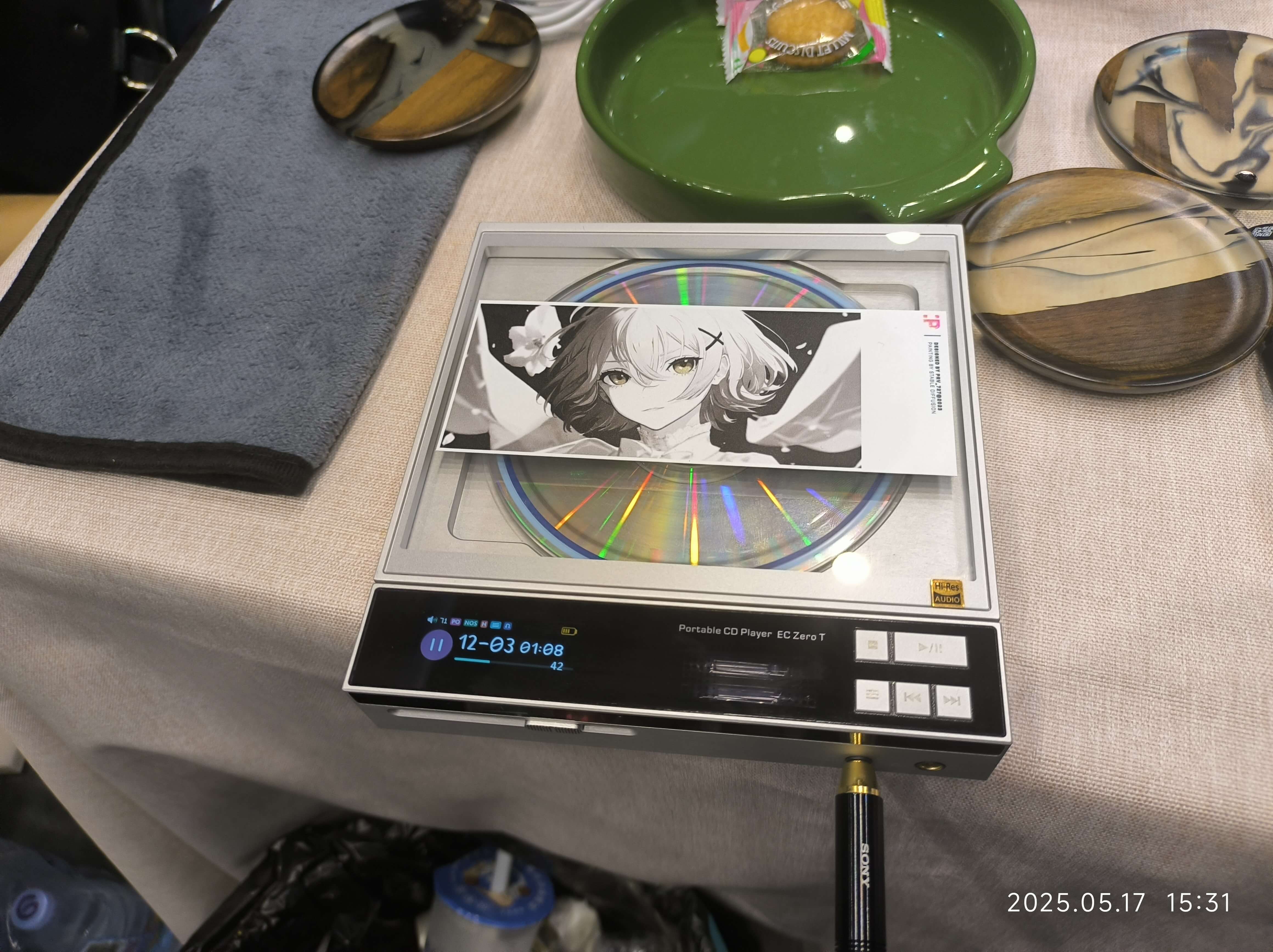 这个耳机是星见夏空的头戴,声音各个频段都有锯齿感。不喜欢,但是应对糊糊乐acg应该是特攻。旁边的达音科便携cd机,也很难蚌。只能说不难听