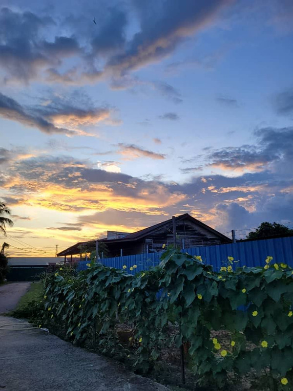 那天黄昏散步时,随手拍下了这张照片。天边的晚霞像是画家随意泼洒的油彩,与绿色藤蔓上的黄花相映成趣。乡村的宁静与自然的色彩让我不由得停下脚步,静静感受这一刻的美好。