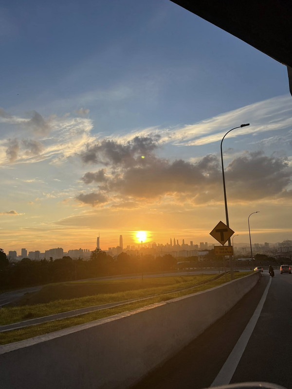 在车上偶然看到这一幕,黄昏的阳光洒在城市天际线之上,也映在停放整齐的摩托车上。这一刻有种电影感,好像无数归家的人,正在一天辛劳之后,驶向属于自己的温暖港湾。