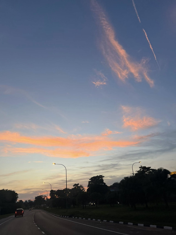 每次一放松,我就忍不住抬头看天。蓝的、粉的、橙的、偶尔还夹带点彩虹和彩蛋(月亮????也来客串一下)。拍漂亮天空已经成了我的小习惯,手机相册里全是它们的“盛世美颜”。