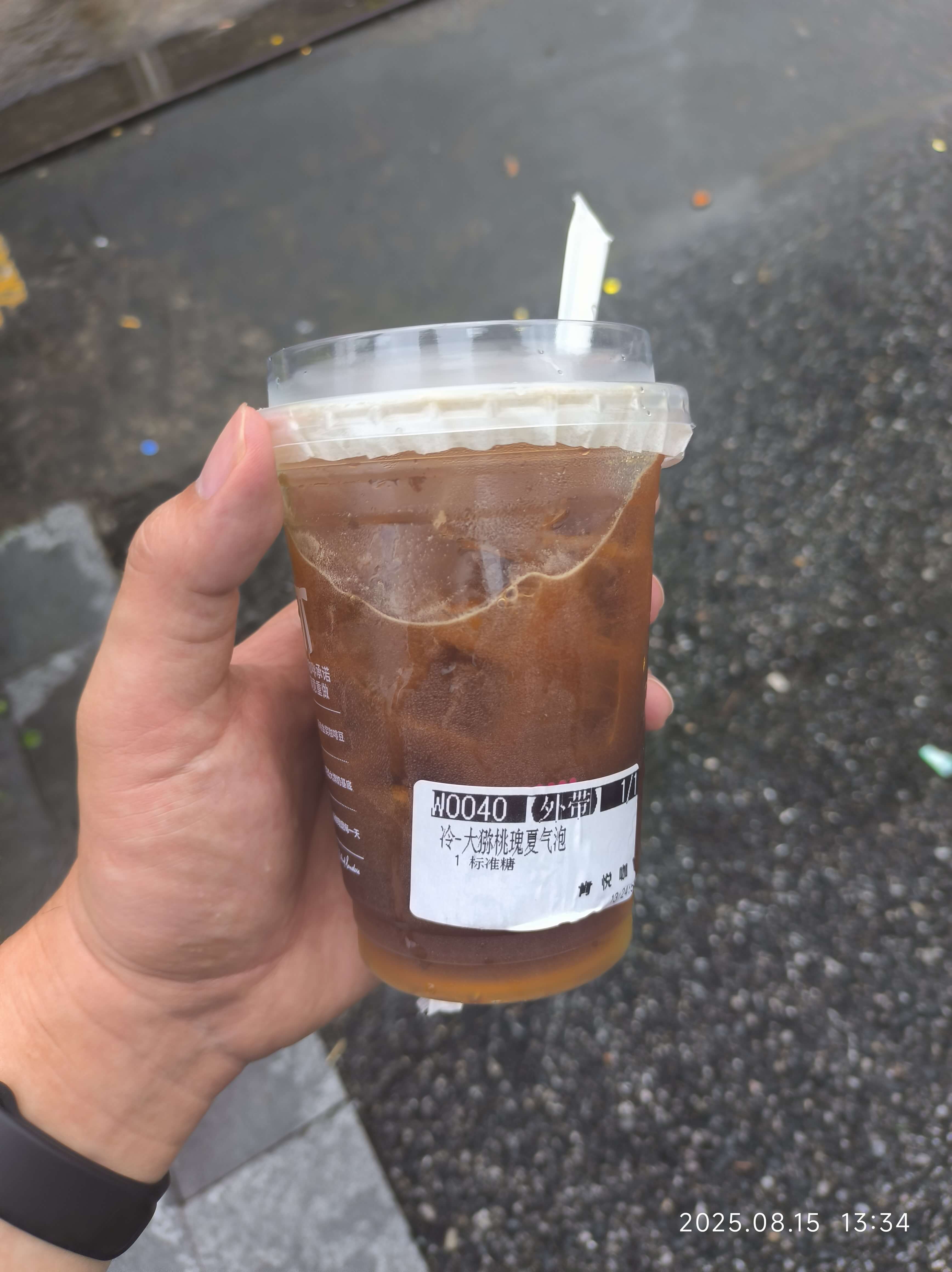 因为没有选少甜的缘故,猕猴桃味有的,但是糖浆甜度压住了很多东西,气泡美式的那个爽感也给压住了。