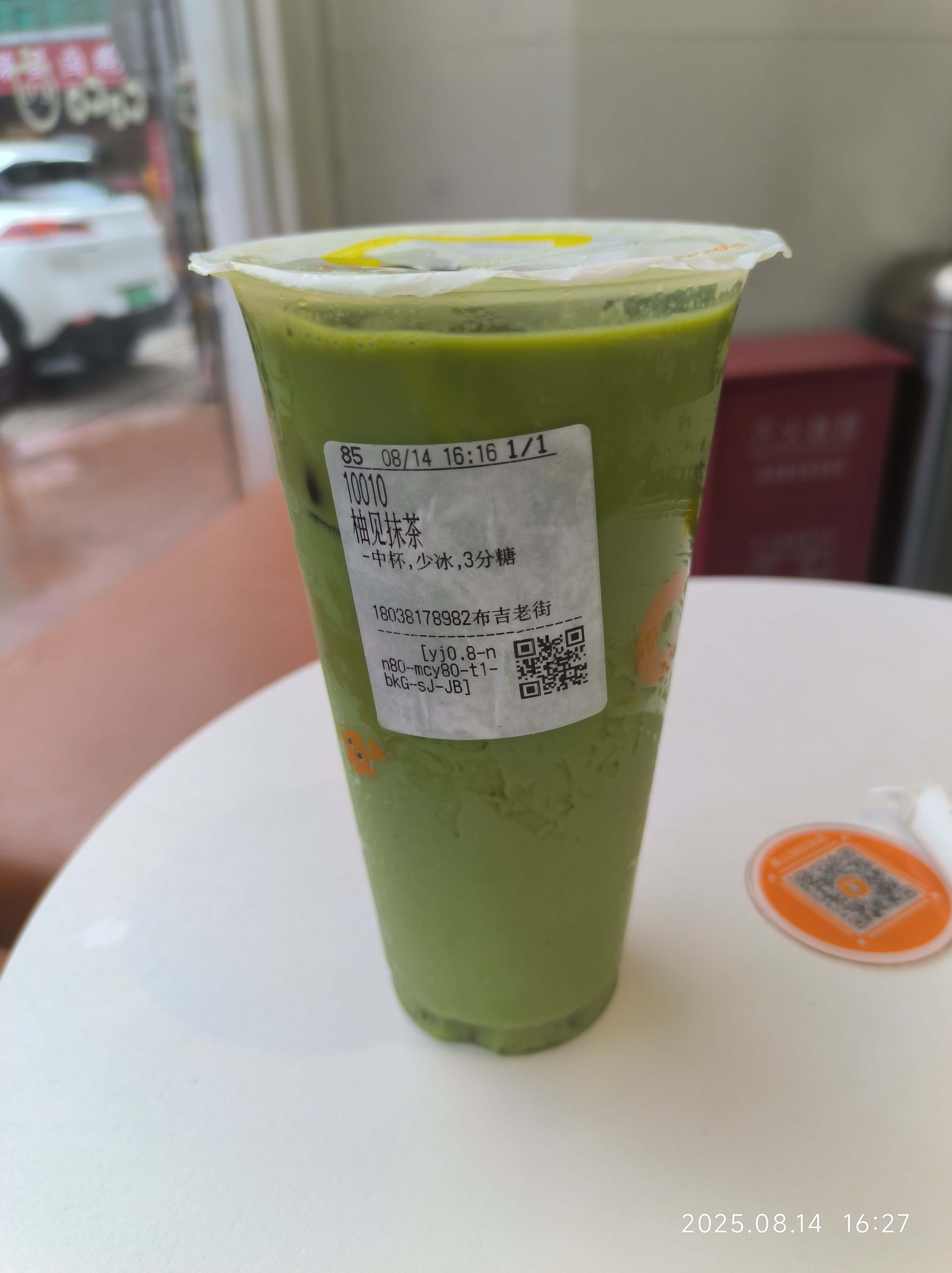 抹茶颜色很好看,但是味道很淡且很烂。里面的柚子皮颗粒有增香作用,可这个味道和抹茶冲突的很明显,这股清香本就不应该这么异样的用在这里,喝的时候还会影响口感,颗粒一直滚动。