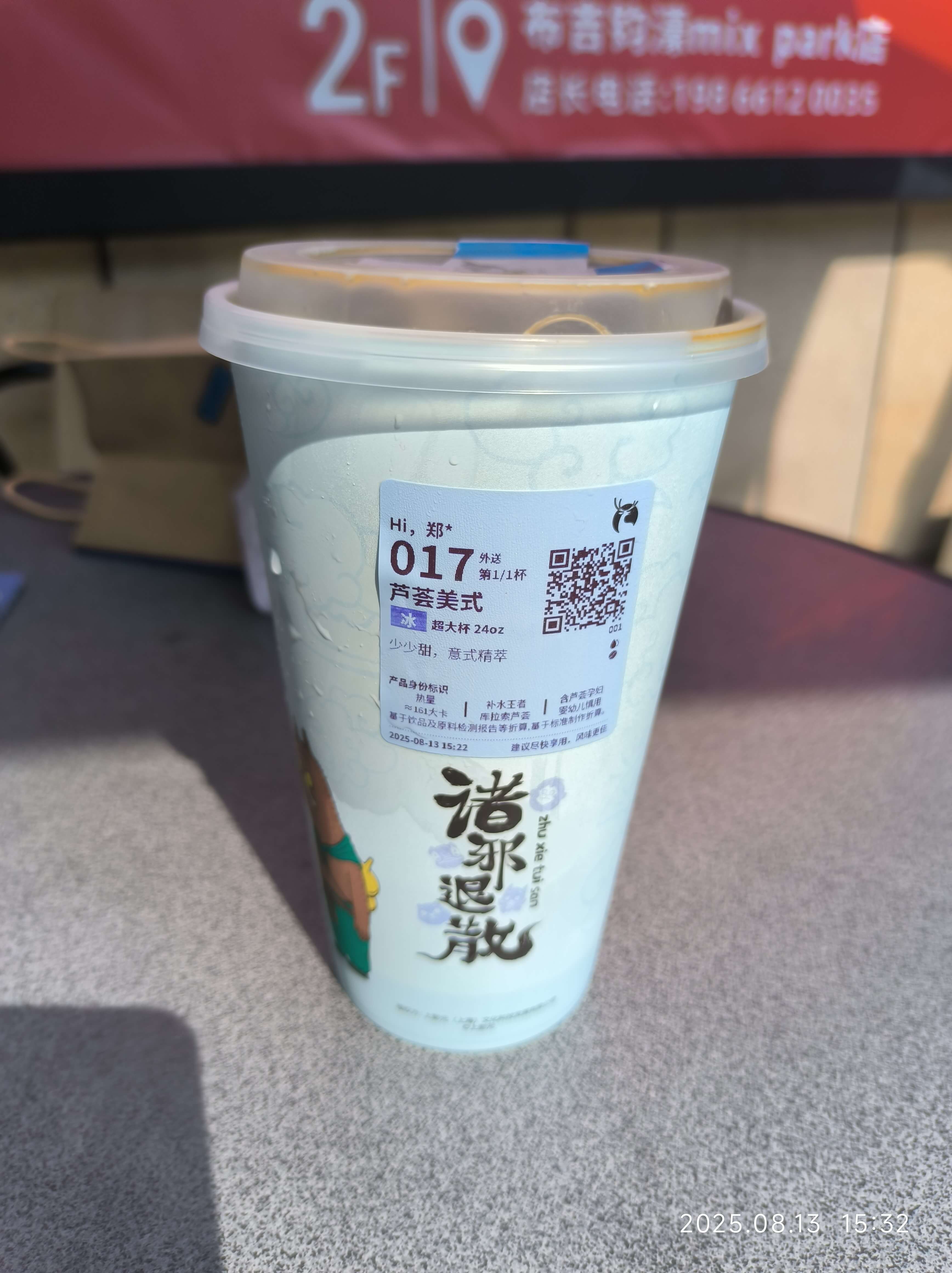 这个芦荟确实有点东西,搭配起来没想到挺好喝的,基本压住了美式的酸苦,剩下能感受到的基本就是添彩头了。