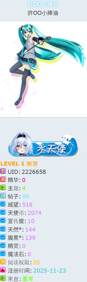 个人总结:在若闲小阁(水區)裡靠寫日記成長起來的水天使。