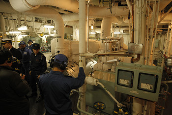 蒸気タービン機関が置かれた区画が機械室だ。2軸の推進プロペラそれぞれに蒸気タービン機関が置かれ、艦内には機械室は2つある(機関操縦室は1つ)。