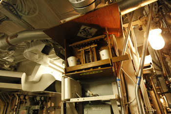 機械室の下にあるのがボイラー室(やはり2つある)。火力を調整し、蒸気を発生させる。一定の火力を維持しないとノッキングを起こし、艦が大きく動揺することもあるらしい…。