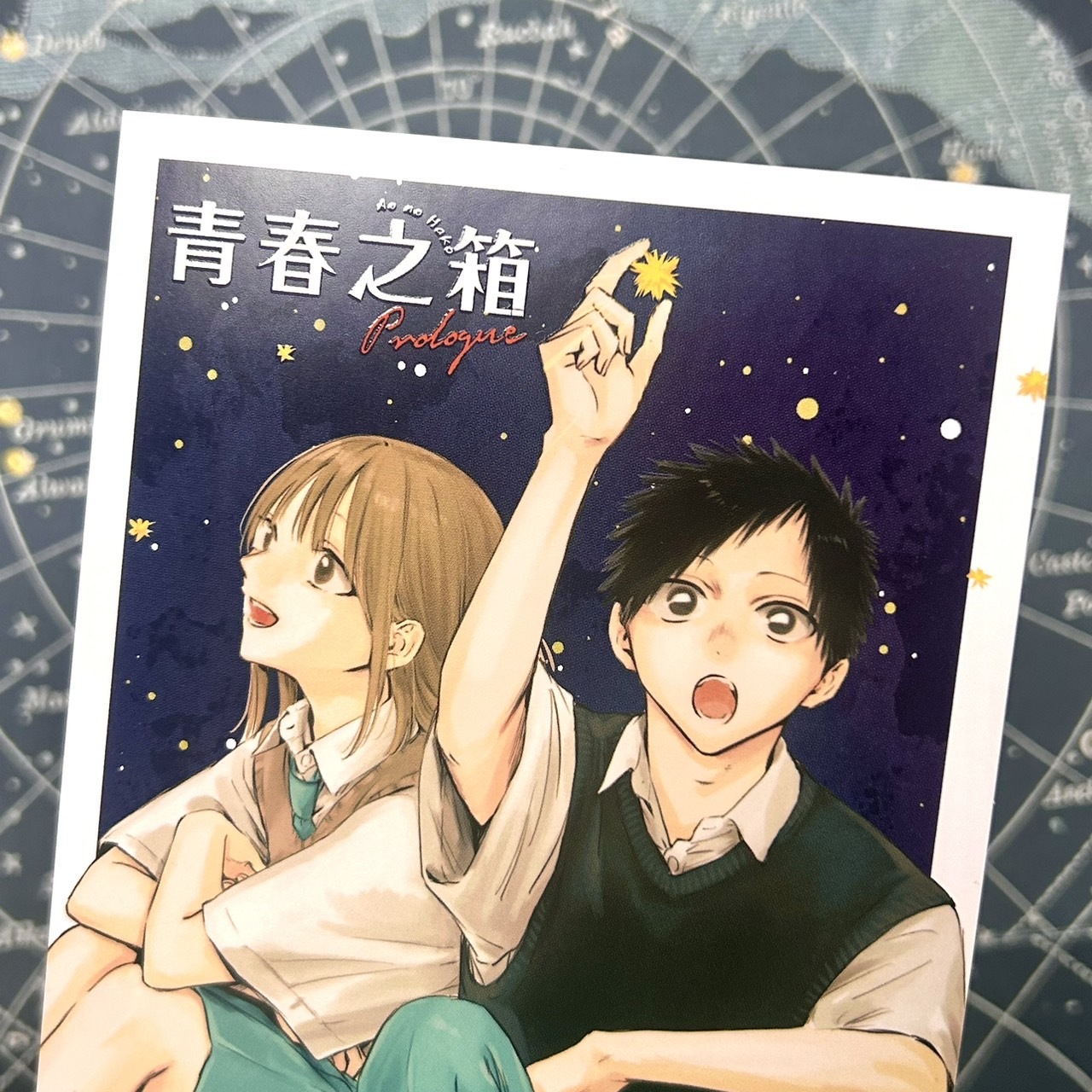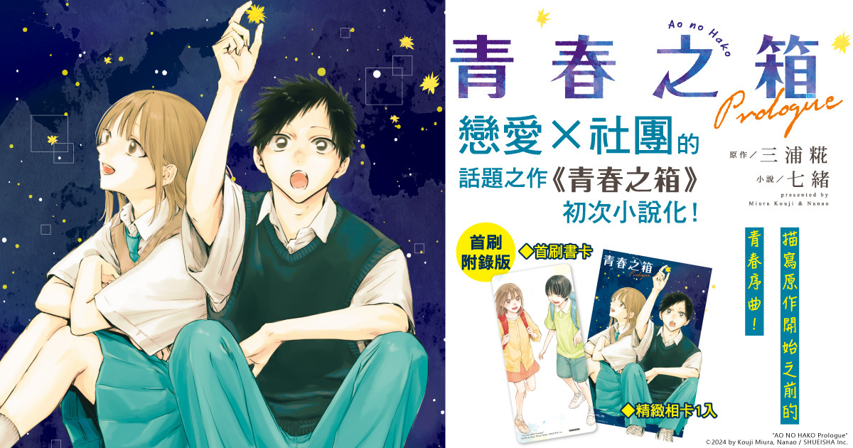 《青春之箱》是三浦糀创作的青春少年漫画,自2021年起在《周刊少年Jump》连载,同年也于台湾的《宝岛少年》推出,而以以大喜与雏、匡三人为主轴的改编前传小说《青春之箱Prologue》,繁中版今日也正式上市。