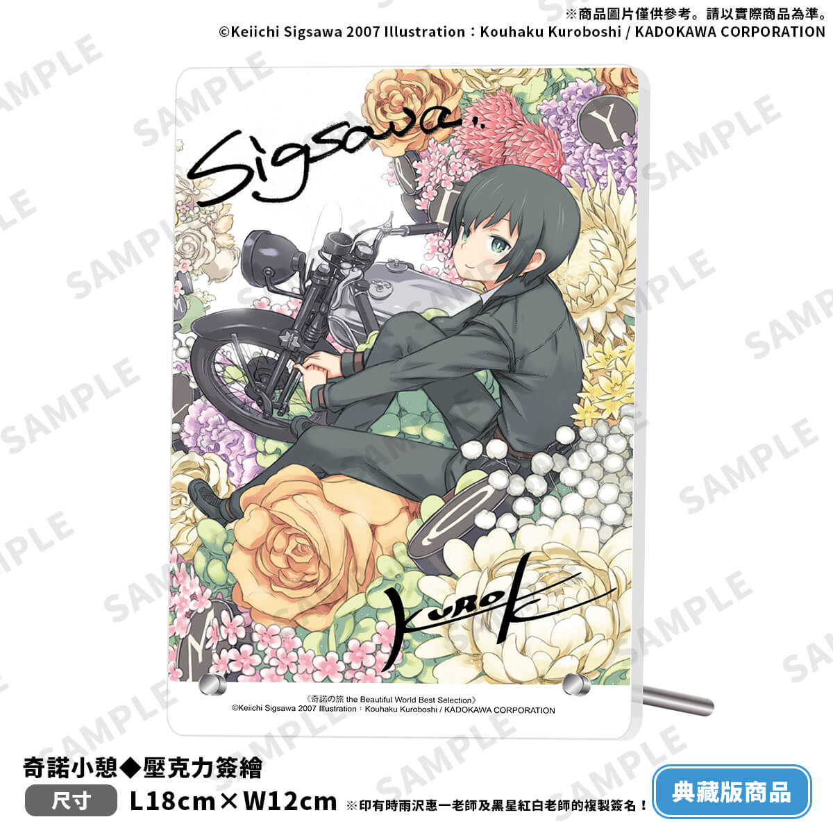 • 奇诺小憩◆压克力签绘(尺寸:L18cm×W12cm ※印有时雨沢惠一老师及黑星红白老师的复制签名! )