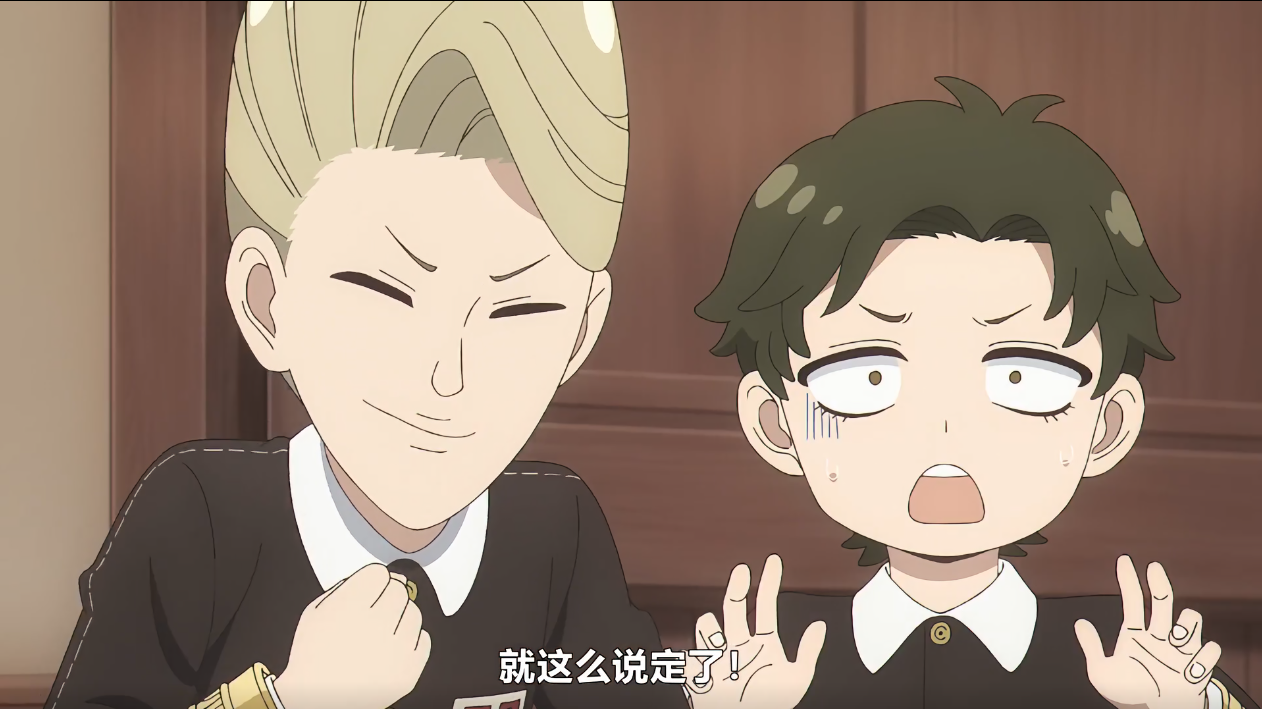 对此阿尼亚反过来赶紧劝贝姬冷静(不是,你真觉得你那怪力母亲真能被学去?),对此,贝姬踱步上前,踏进了已经切换的达米安他们的镜头里,指着他们表示听说达米安你也睡过头,你确定你不会拿雷?对此跟班马上反击回去,表示尔等怎能跟达米安相提并论(逮!尔等怎可与先生比拟!)