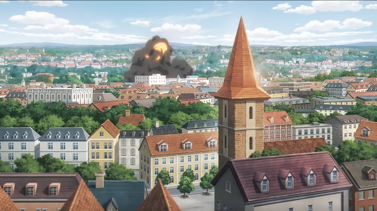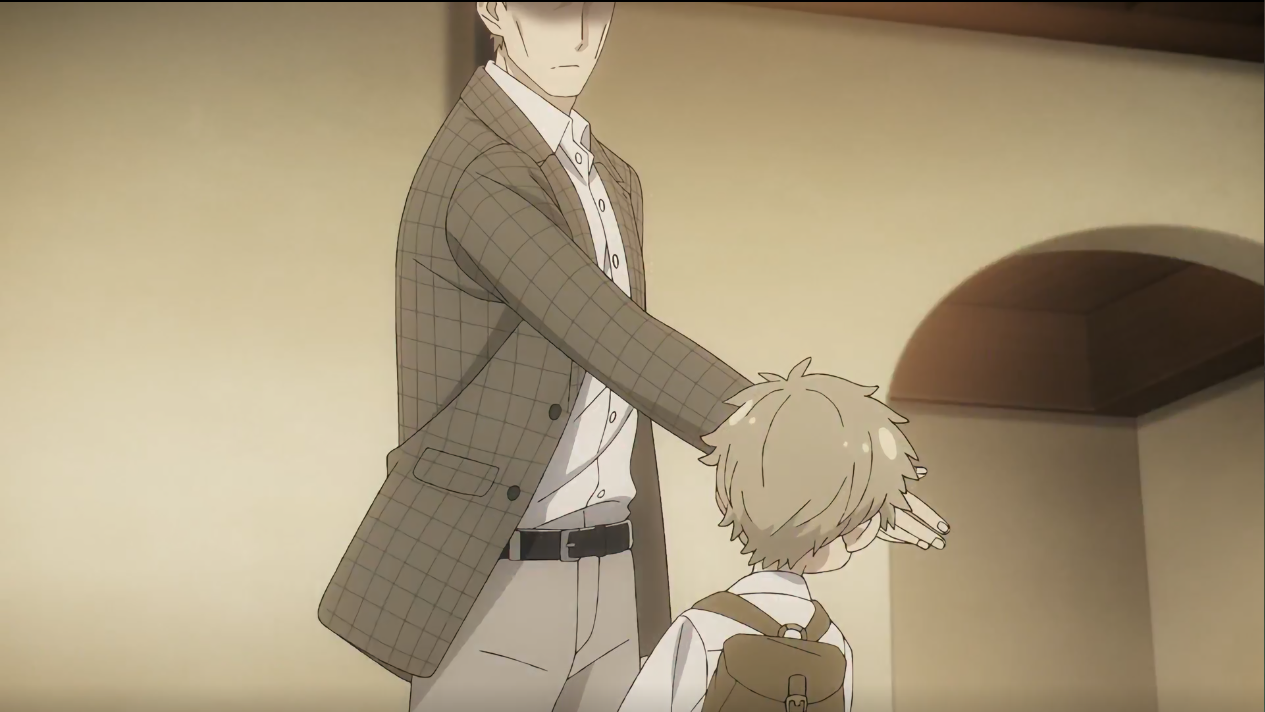接下来旁白揭示了这个孩子的身份,他就是过去的黄昏。输家吐槽黄昏连玩具套装都没有,黄昏表示没办法,父亲严格。放在仓库里的收音机开始播着本国抗议东国的相关新闻,此时的四人正在打牌,似乎没太注意收音机里的内容,他们只是在聊是怎么找到这个场地的,其中一人表示要不要带点帐篷吃的啥的在这个仓库里过夜,其他几人也都同意了。夕阳西下,四人一边唱着歌一遍走在回家的路上,中途四人分离各自回家,黄昏慢慢的往家走去,路上气氛十分和谐美好。夜幕降临,黄昏回家了,一进家门就发现黄昏的父亲在跟母亲说着什么,可以看出黄昏父亲对黄昏比较严厉,看到黄昏拿的橡皮筋枪批评道怎么还在玩战争游戏,说要想想自己的将来,好好念书。黄昏表示我想过了,未来打算跟好友加入军队,但是被自己的父亲打断了,表示你这个胆小鬼上了战场只是累赘(从这块可以推测黄昏的父亲应该是军人),黄昏立刻反驳表示可以的,要打倒东国的坏蛋,结果父亲二话不睡直接一巴掌扇了过来。