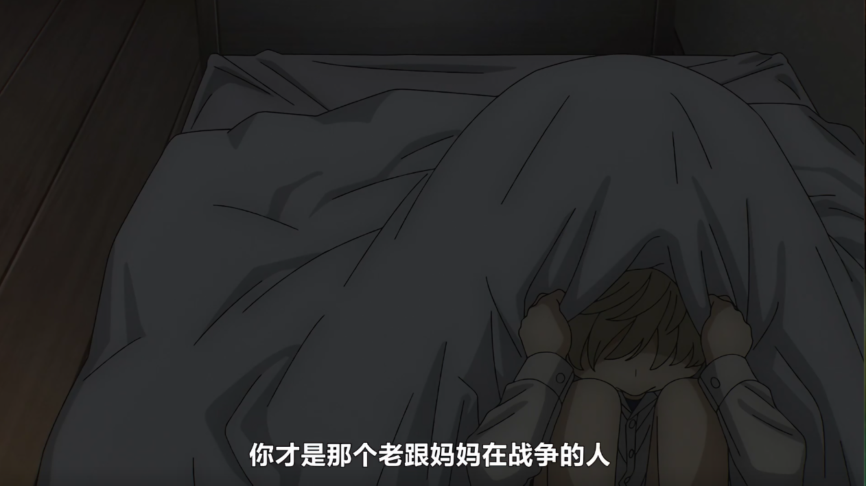 扇完后父亲教训黄昏说你有跟东国人实际上交流过吗,并表示不会有战争发生(经典flag),不要老想着战争(这个确实,战争可不是啥好东西,劳民伤财,阴阳分隔),黄昏一时气不过径直跑进自己的房间钻进了被窝,外面父母因此吵了起来,黄昏愤怒中表示你才是老跟妈妈战争的人,这块战争的含义被宽泛且歧义化了。