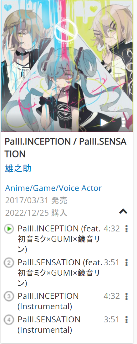Back to Thread: [OTOTOY自购][221019]PaIII.AGITATION / PaIII.INCEPTION / PaIII.SENSATION -- 雄之助 [FLAC][173MB]