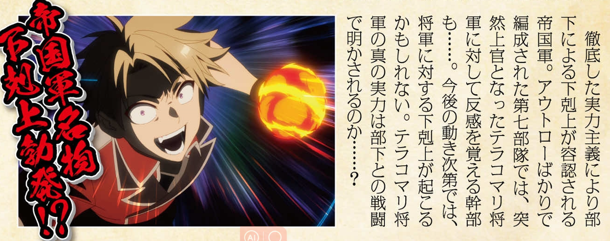 内容:因为彻底的实力主义而被部下容忍的帝国军。在由一群罪犯组成的第七部队中,有些干部甚至对缇拉鞠将军抱有反感... . 根据今后的动向,可能会出现超越将军地位的情况。缇拉鞠将军的真正实力能否在与部下的战斗中显露出来... ?