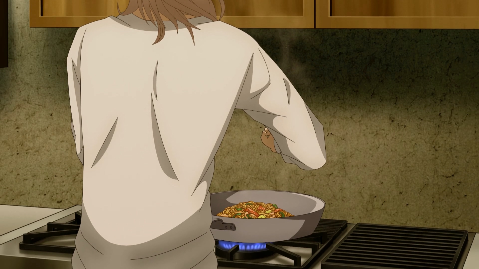 海为岳做的第一顿饭是升级版拿坡里意面,还说这是与岳初遇时充满回忆的料理,所以在此时亲自为岳做,这是代表什么呢?感觉从岳来到东京之后,每一句都是直击岳心灵的话语,海的撩人技能太厉害了,虽然这是一部美食番,但是不得不让人浮想联翩呀XDDD